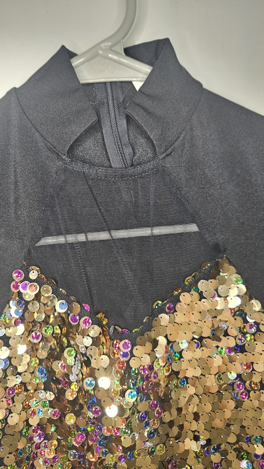 как выглядит A Wish Come True 18878 Adult Small Black With Gold And Rainbow Sequin Costume фото