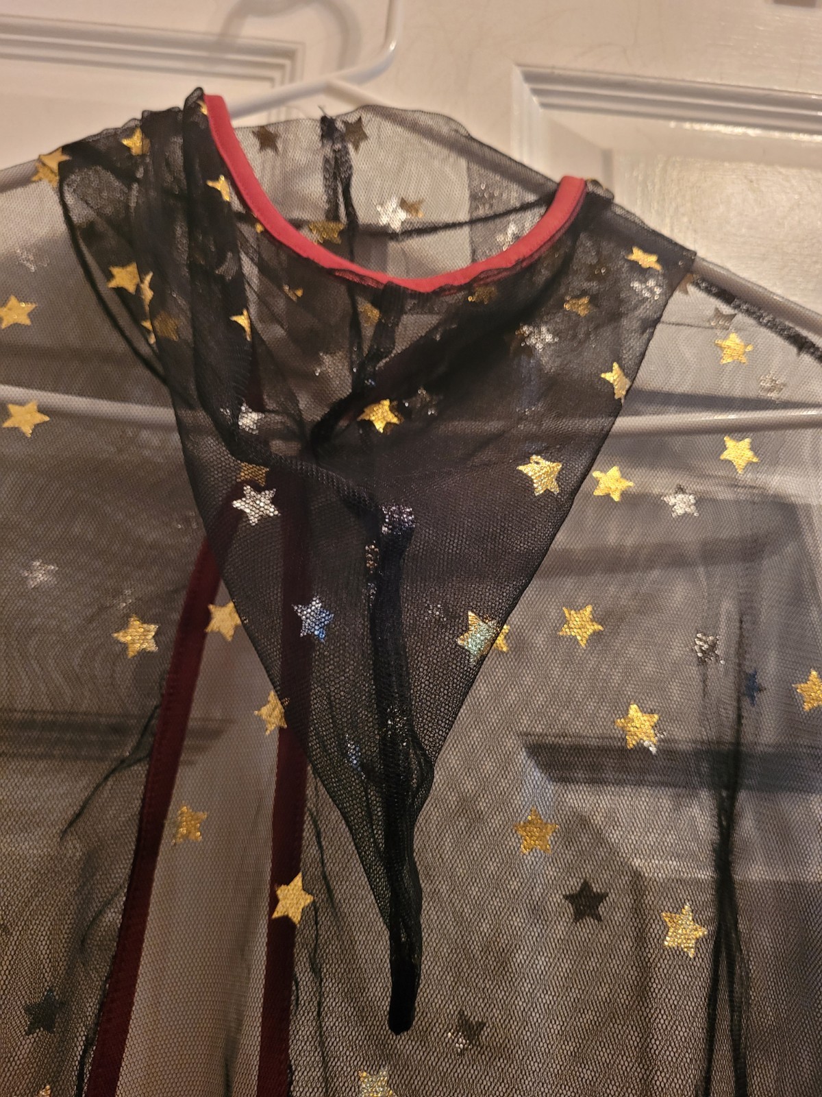 как выглядит Harry Potter Black Starred Sheer Cape W Hood Size Kids Large 10-12 фото