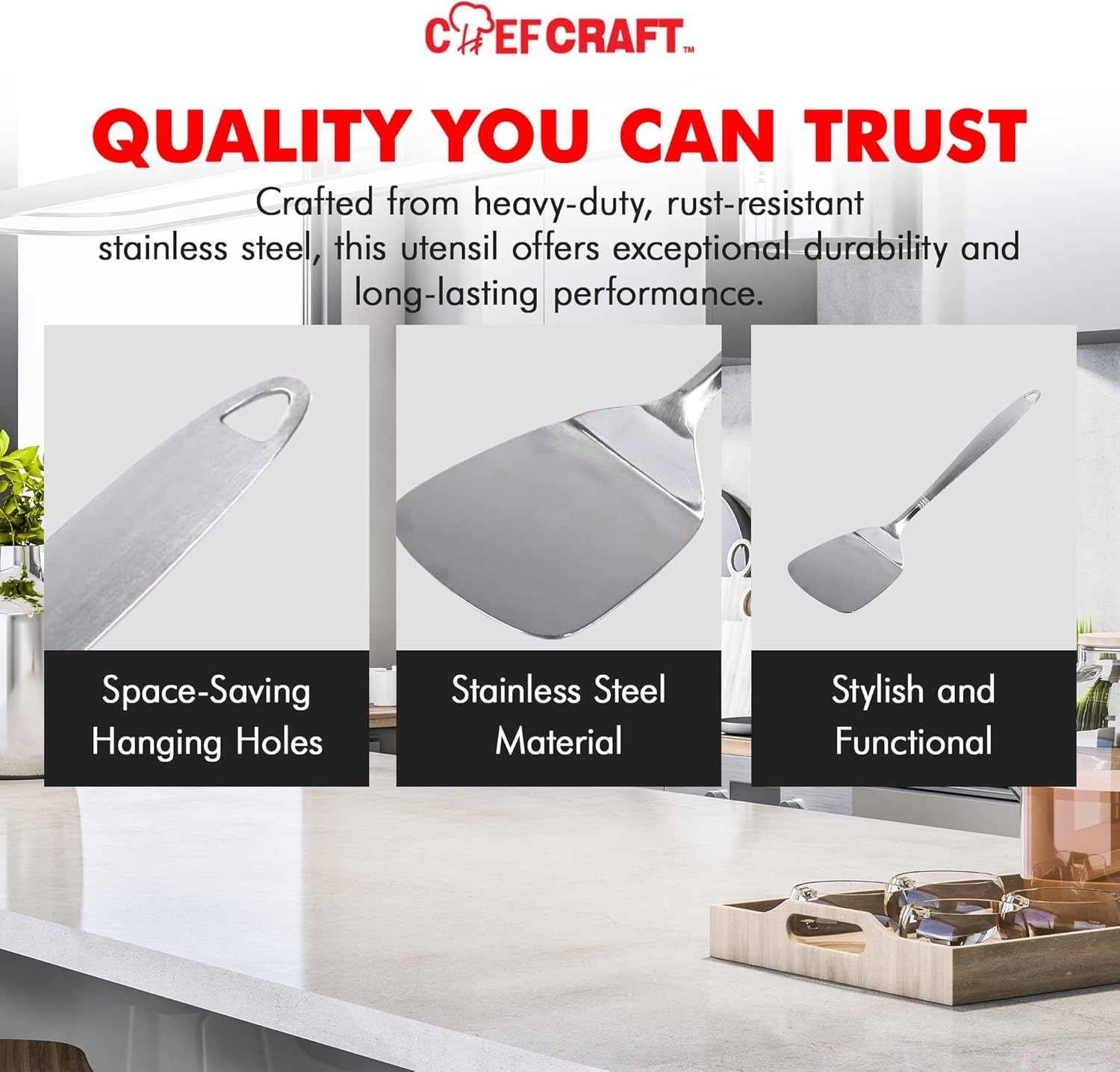 Chef Craft Select Turner/Spatula, 13.5 inch, 12.5 Stainless Steel