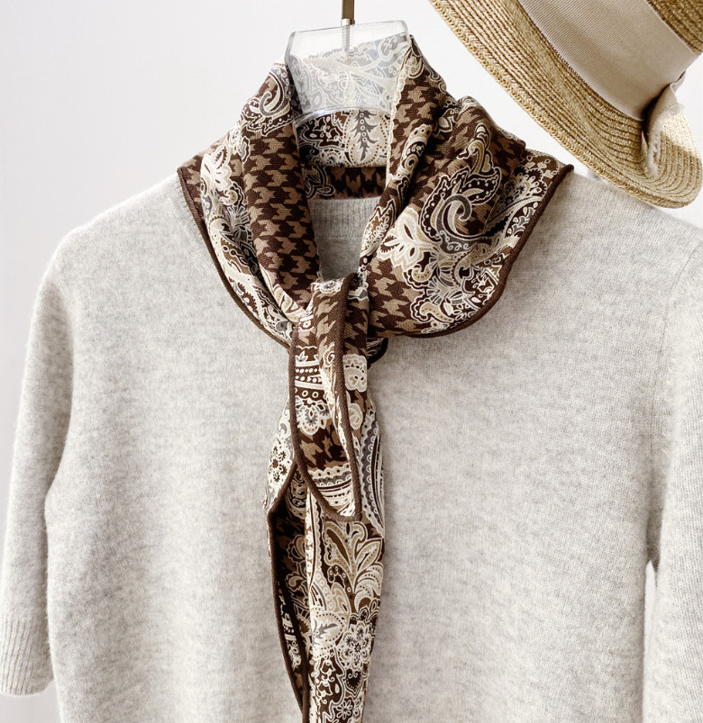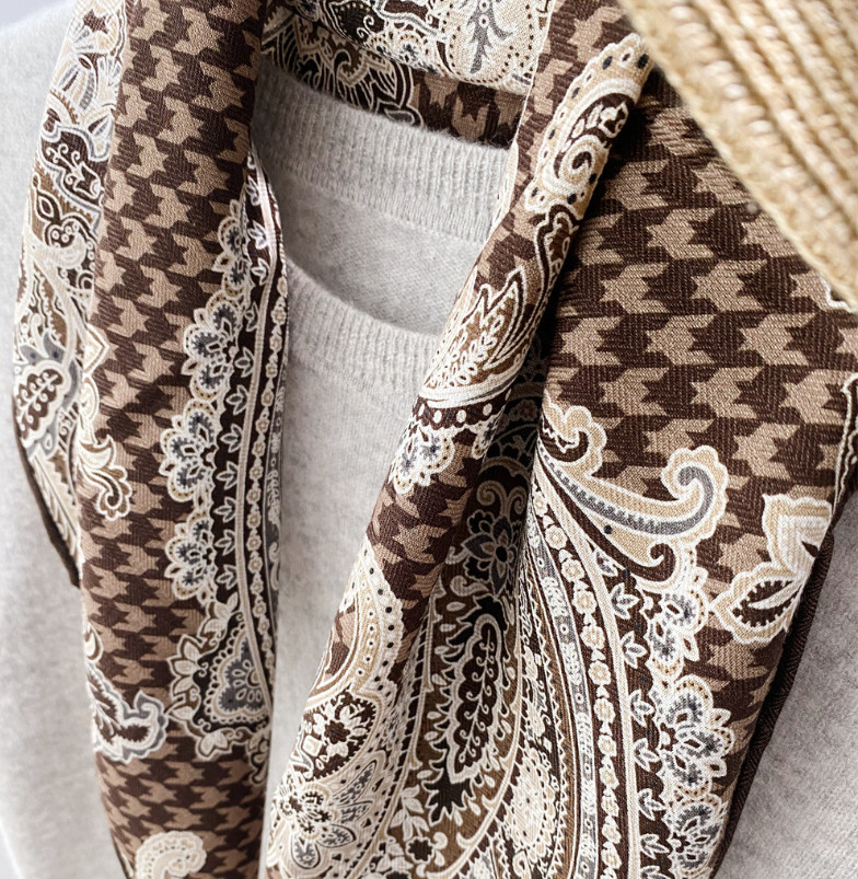 70 Cashmere 30 Silk Wrap Scarf Brown cashew Print Double Face Print Shawl 27''
