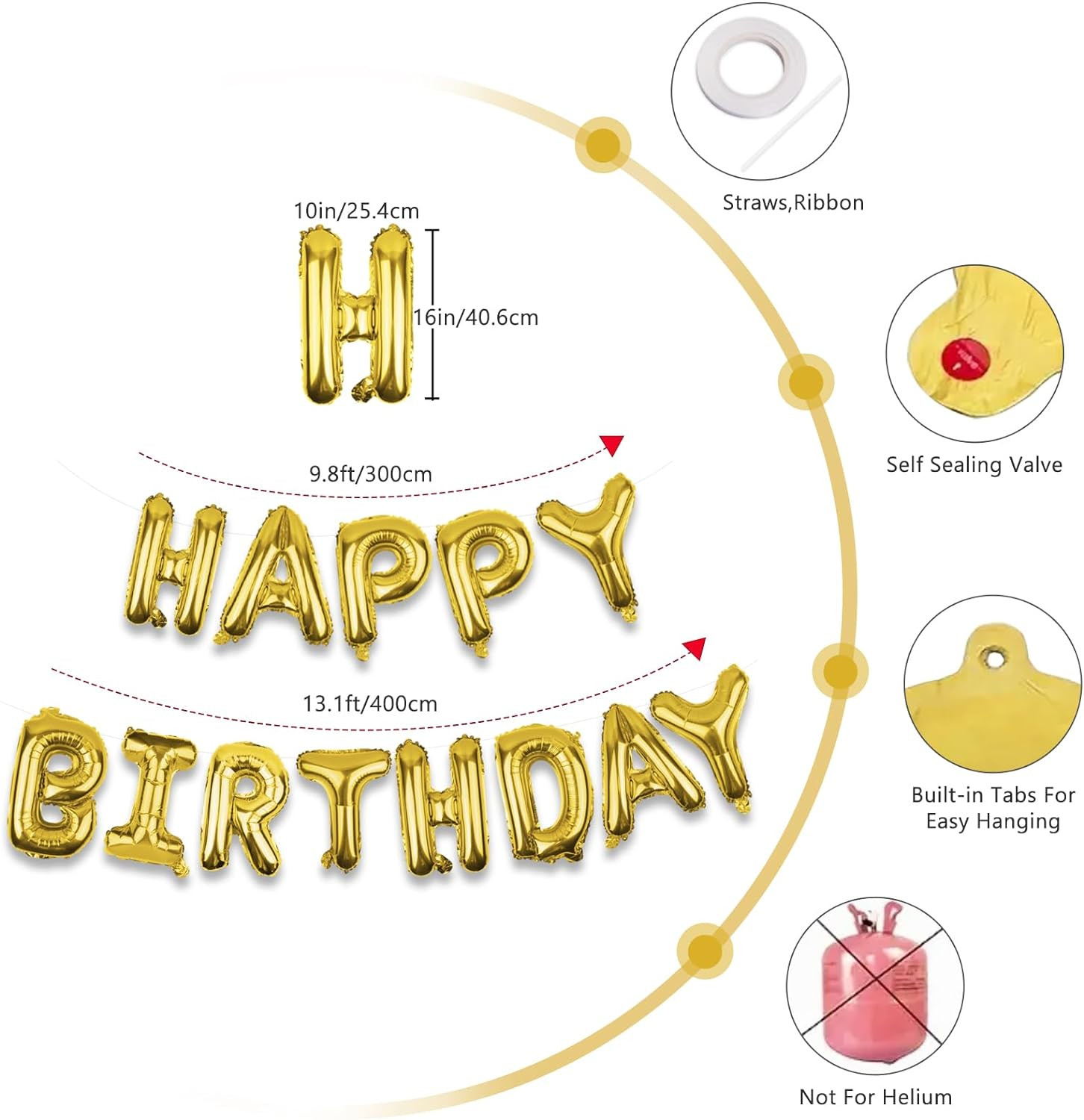 Gold Happy Birthday Balloons Banner 16 Inch Mylar Foil Letters, Inflatable Party