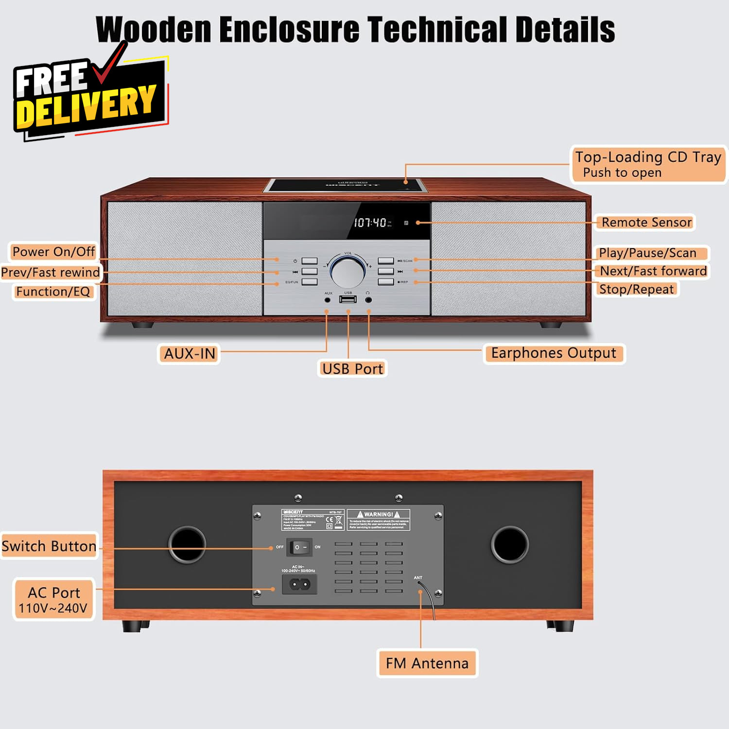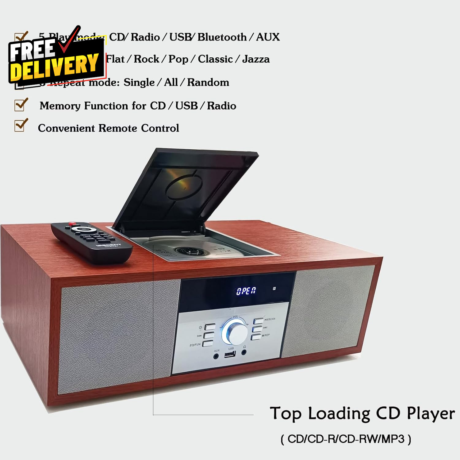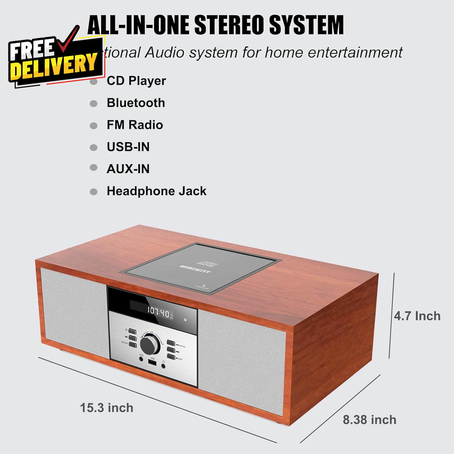 Vintage Style Home CD Player with Bluetooth FM Radio USB Port for MP3 Playb.....