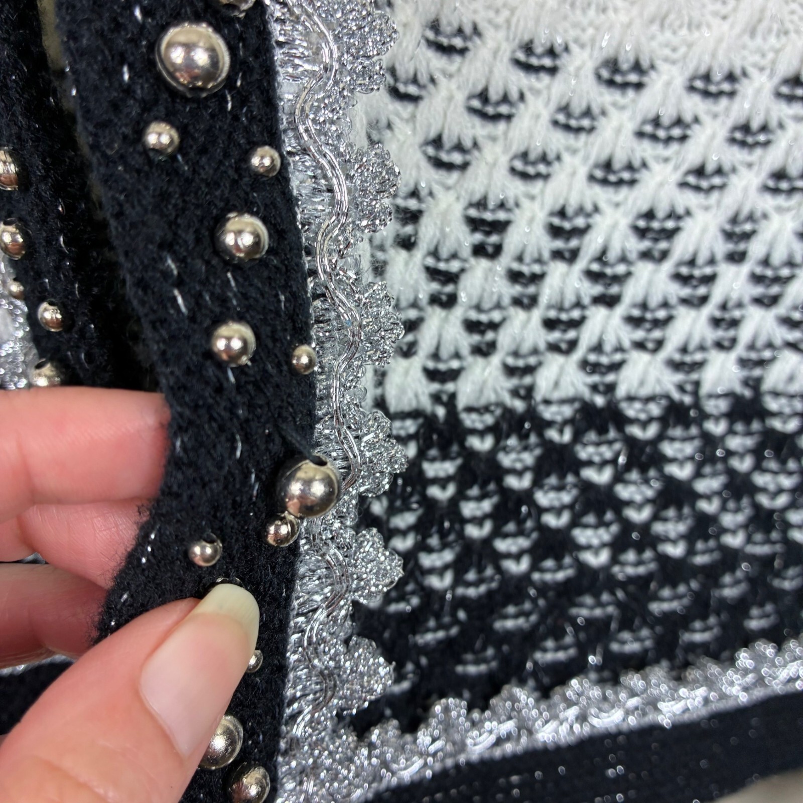 Alberto Makali Beaded Knit Navy White Sparkly Cardigan Sweater Size XL