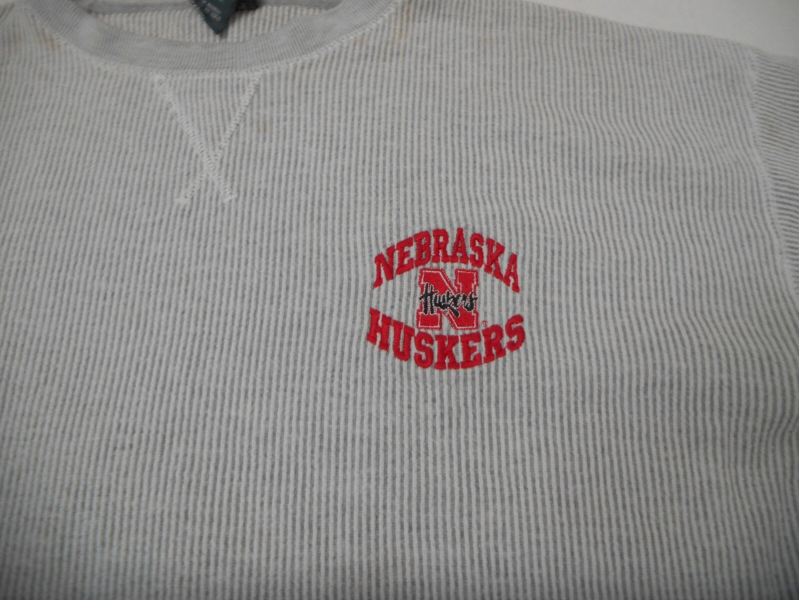 как выглядит Vintage 90s Nebraska Huskers Ribbed Striped Grey Sweatshirt Crewneck Size XL фото