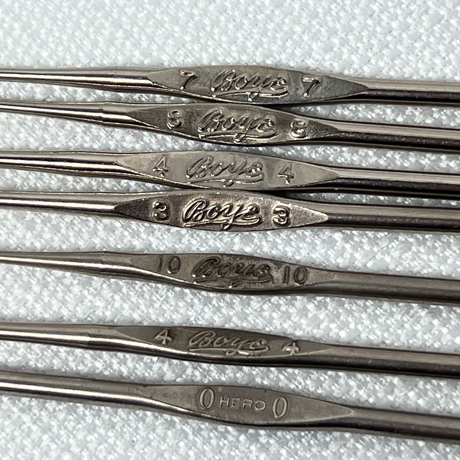 Vintage Set of 7 Boye Hero Metal Crochet Hooks
