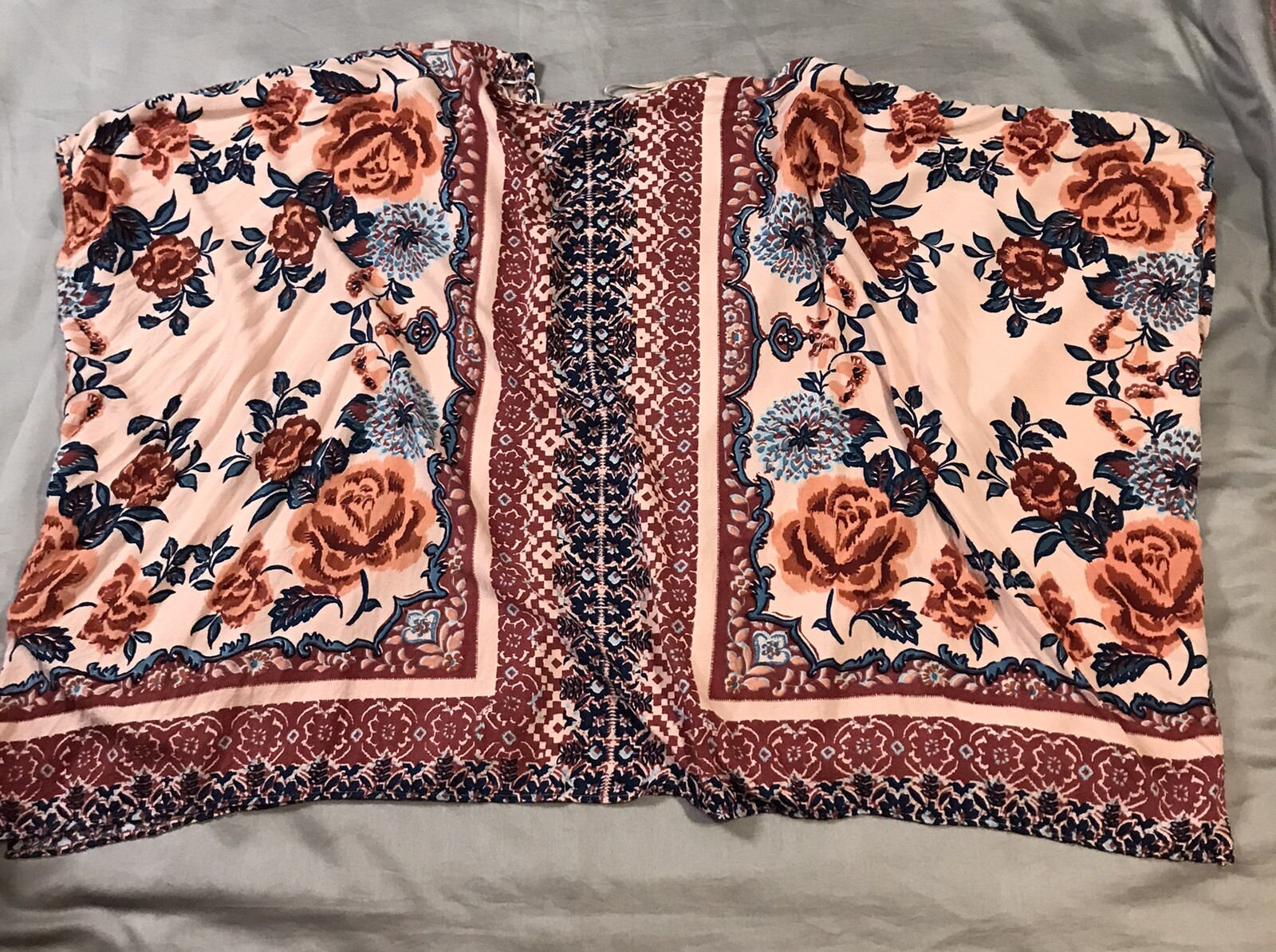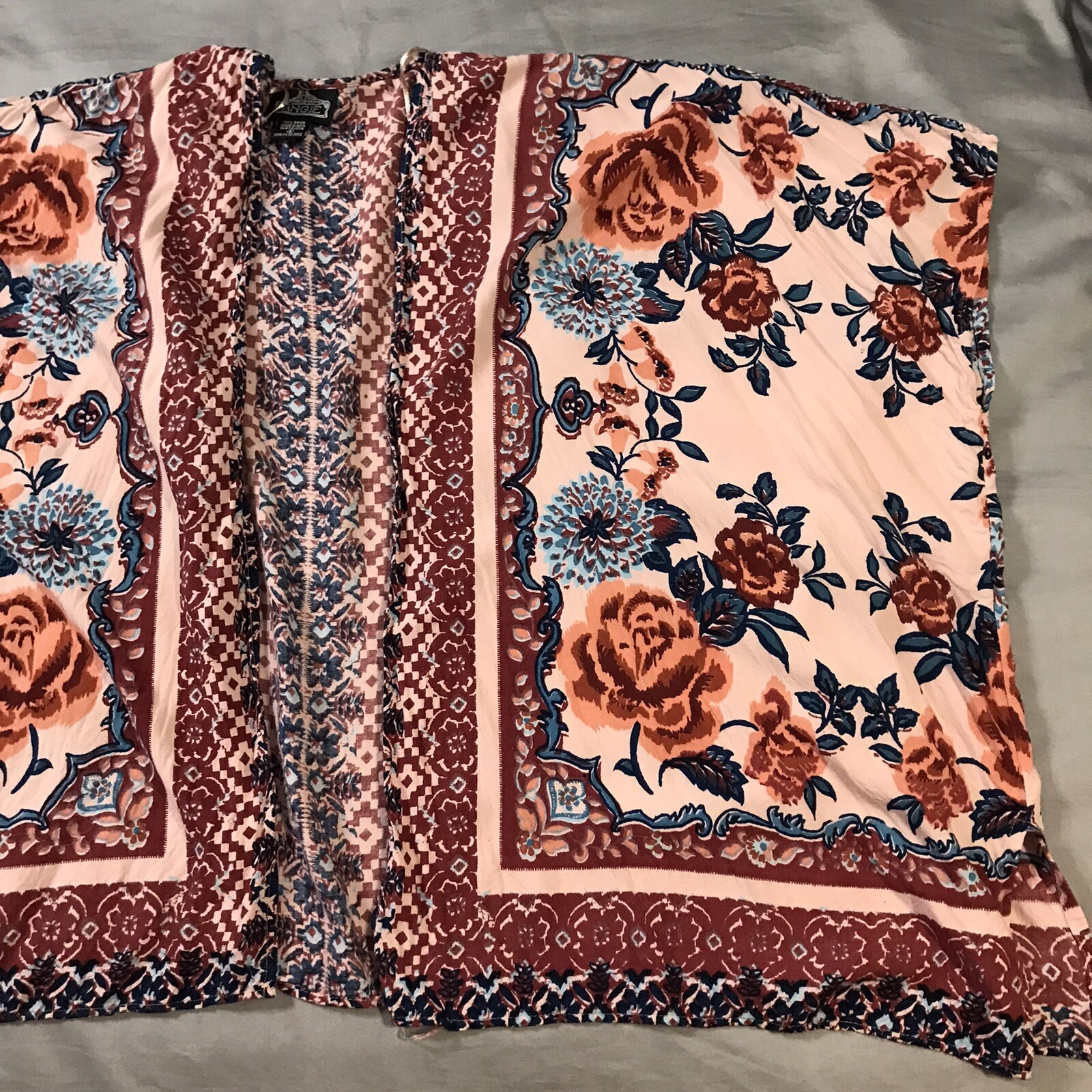 как выглядит Angie Kimono Womens Small Pink Blue Floral Rayon Oversized фото