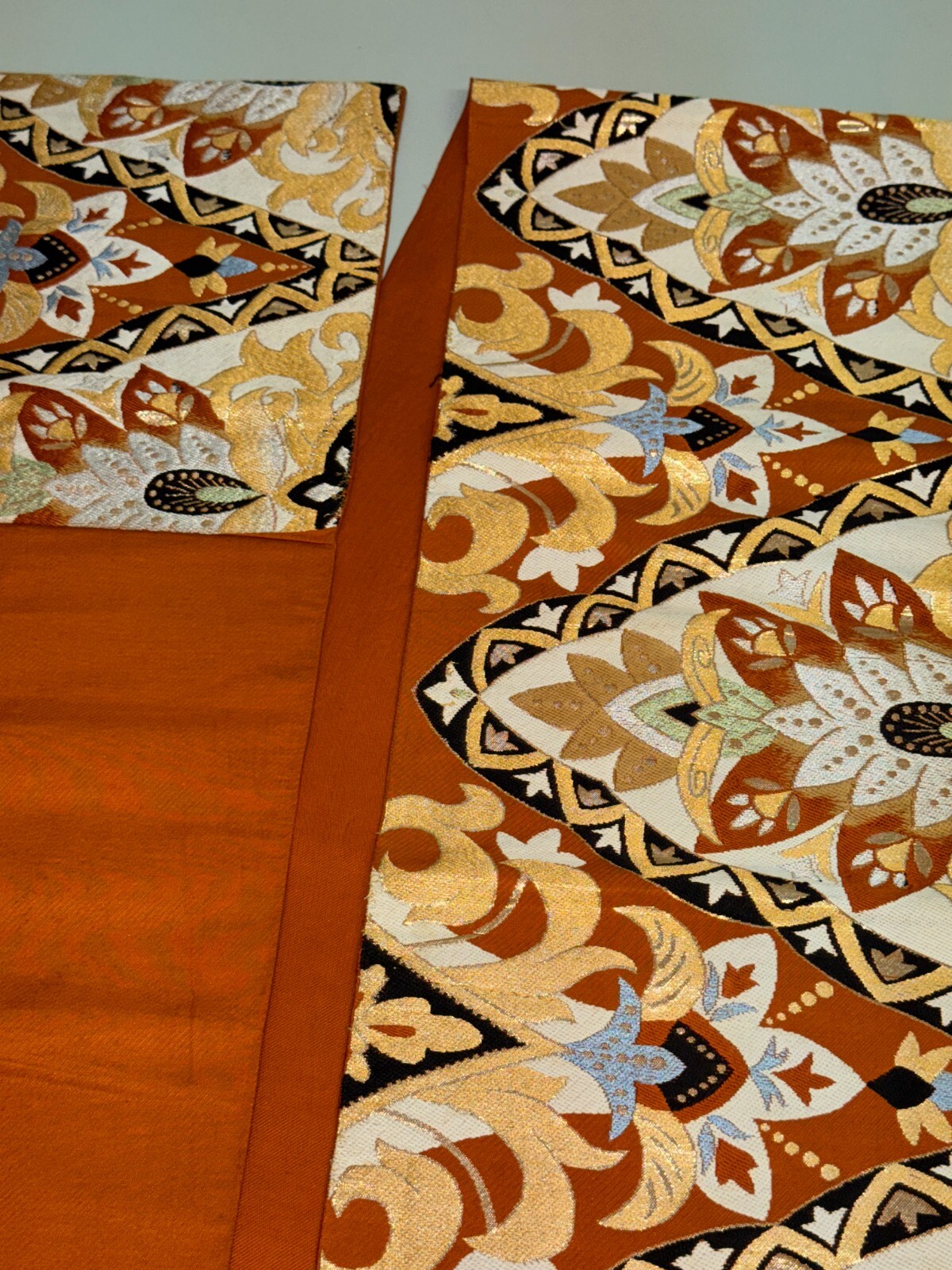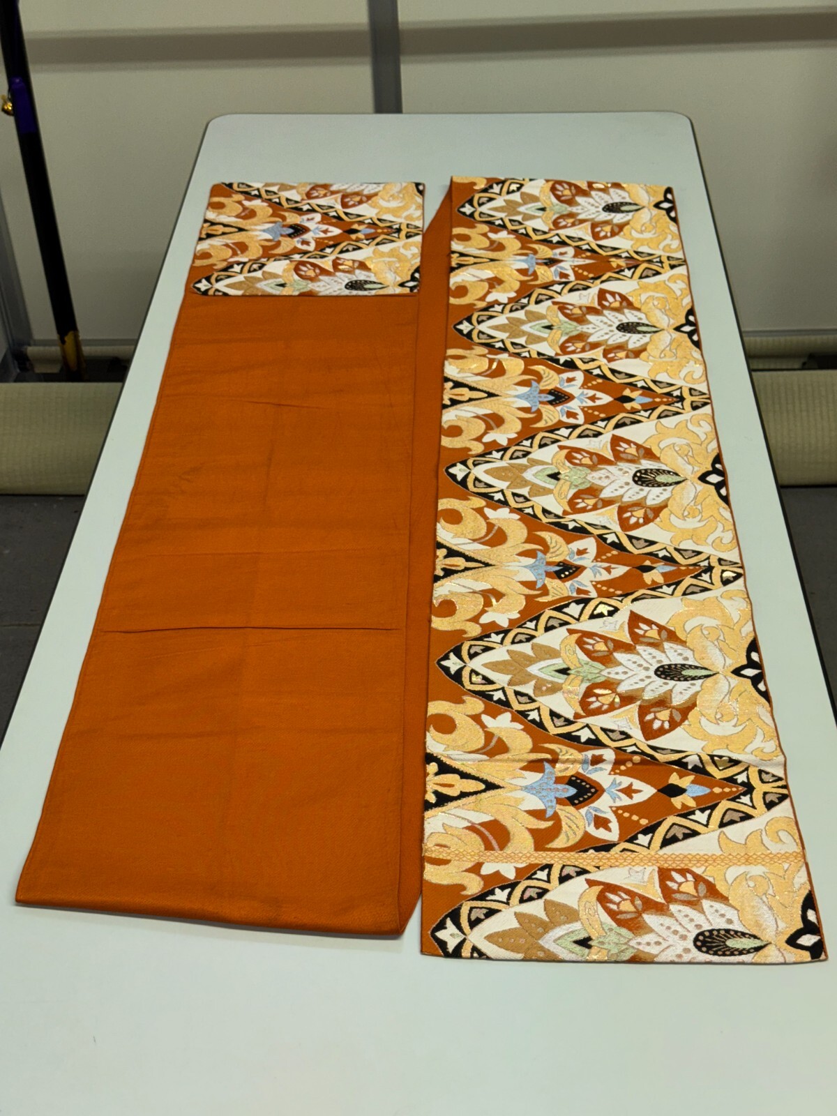 как выглядит Japanese Vintage Kimono Fukuro Obi silk orange expensive embroidery 159x11.8in фото