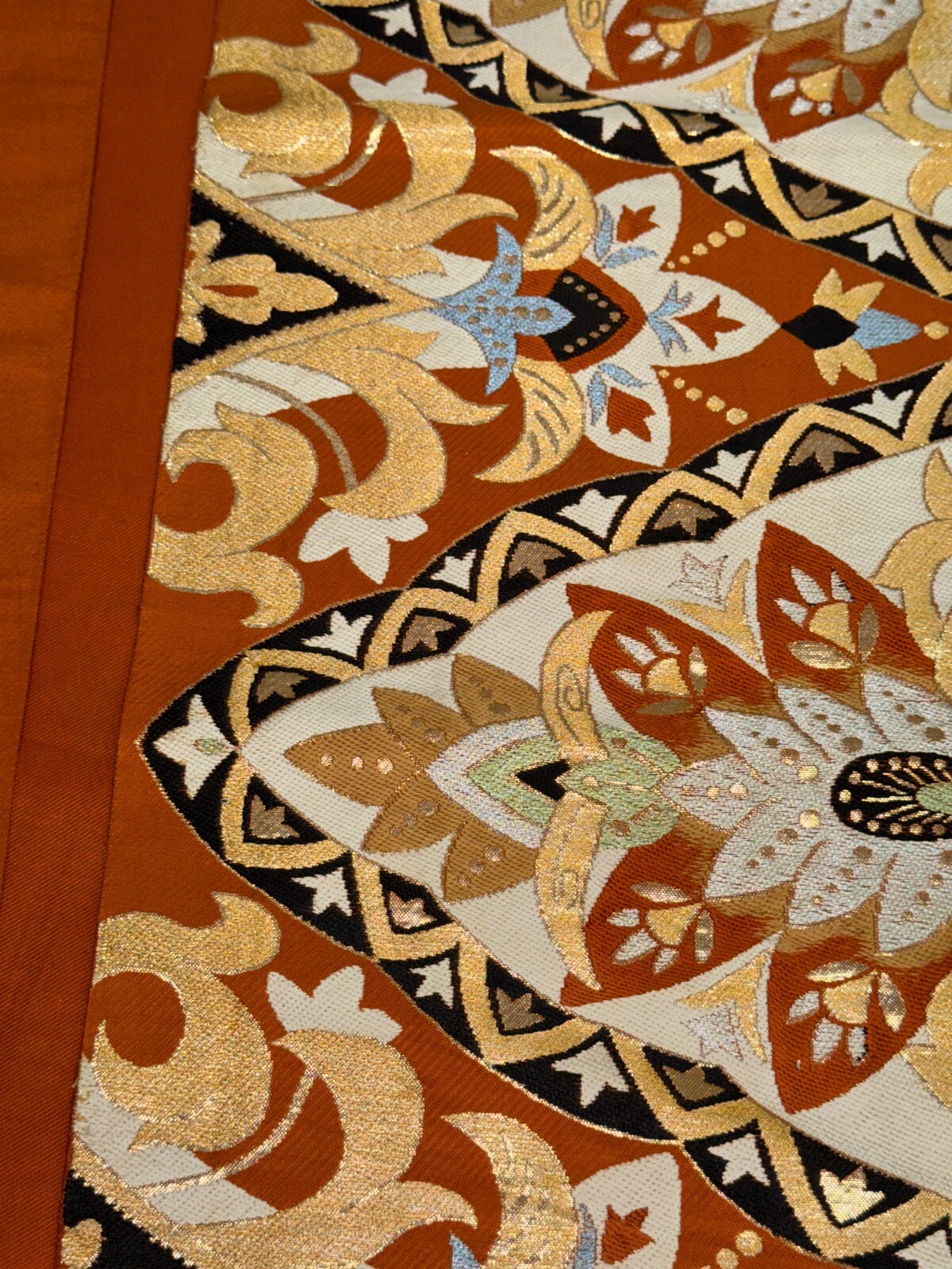 Japanese Vintage Kimono Fukuro Obi silk orange expensive embroidery 159x11.8in