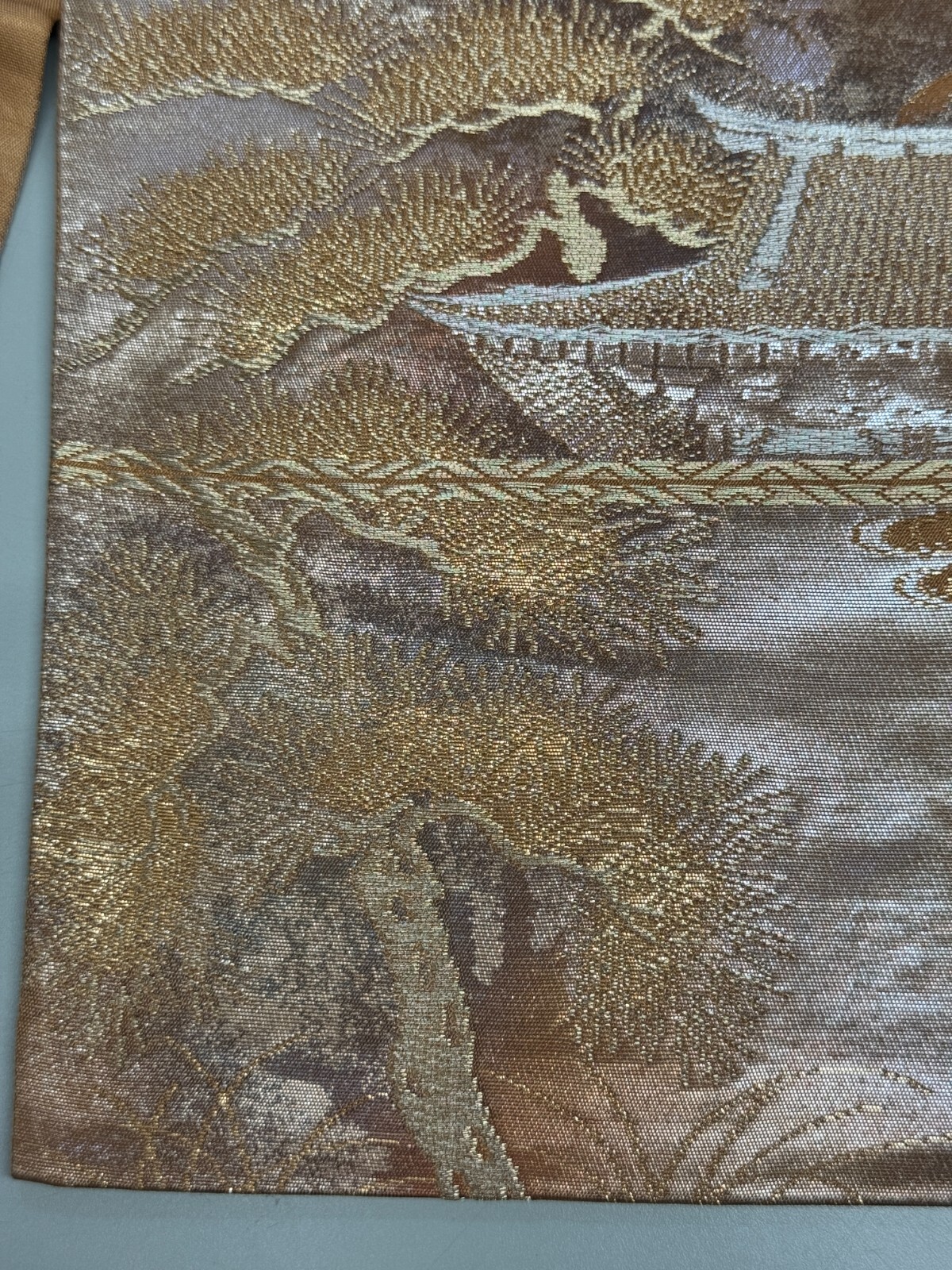 как выглядит Japanese Vintage Kimono Fukuro Obi silk gold expensive embroidery 163.7x11.8in фото