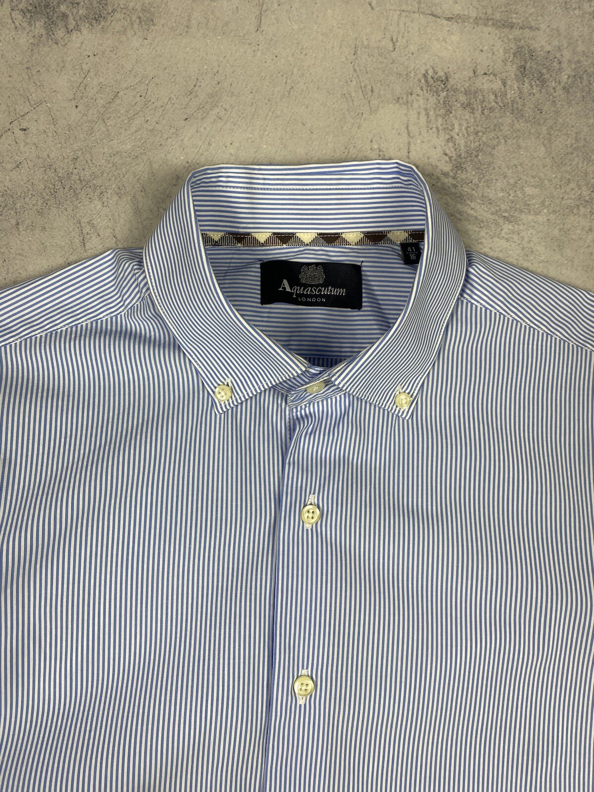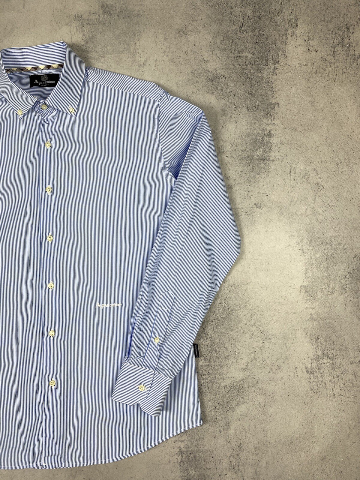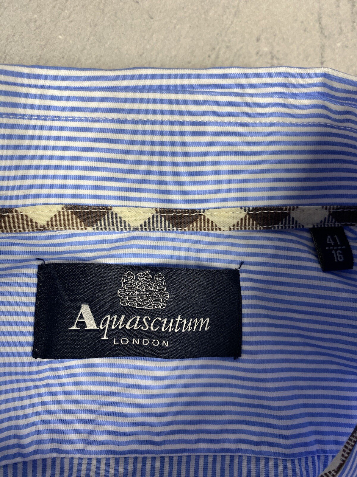 Aquascutum London Stripped Nowa Check Long Sleeve Button Up Shirt Men s Size M