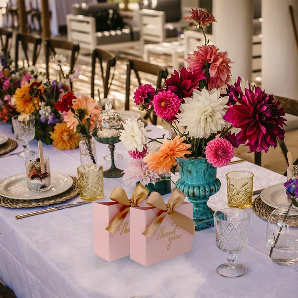 Thank You Gift Boxes Favor Small Treat Boxes with Gold Bow Ribbon