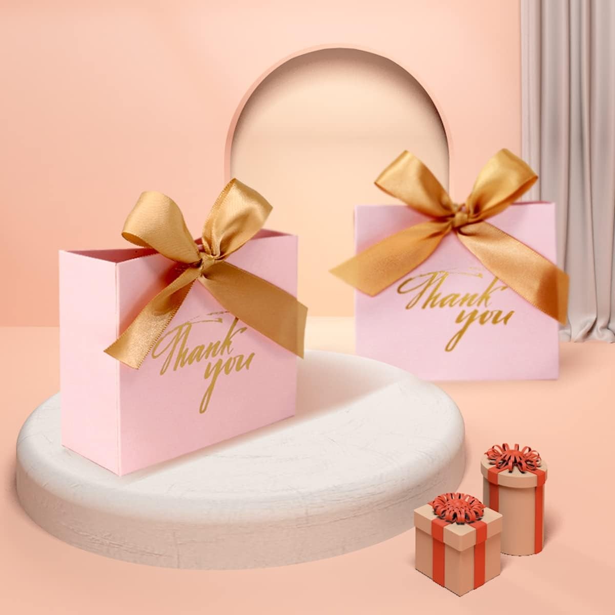 как выглядит Thank You Gift Boxes Favor Small Treat Boxes with Gold Bow Ribbon фото