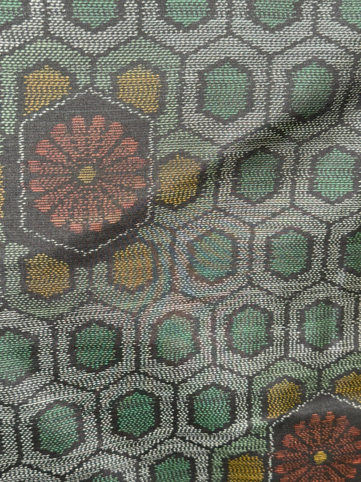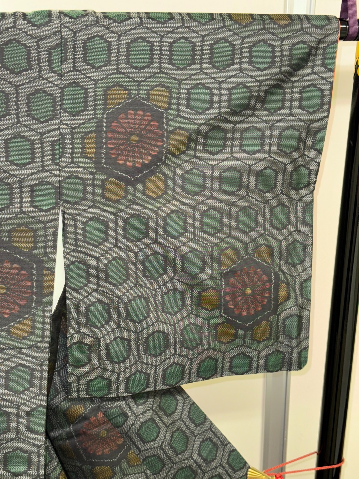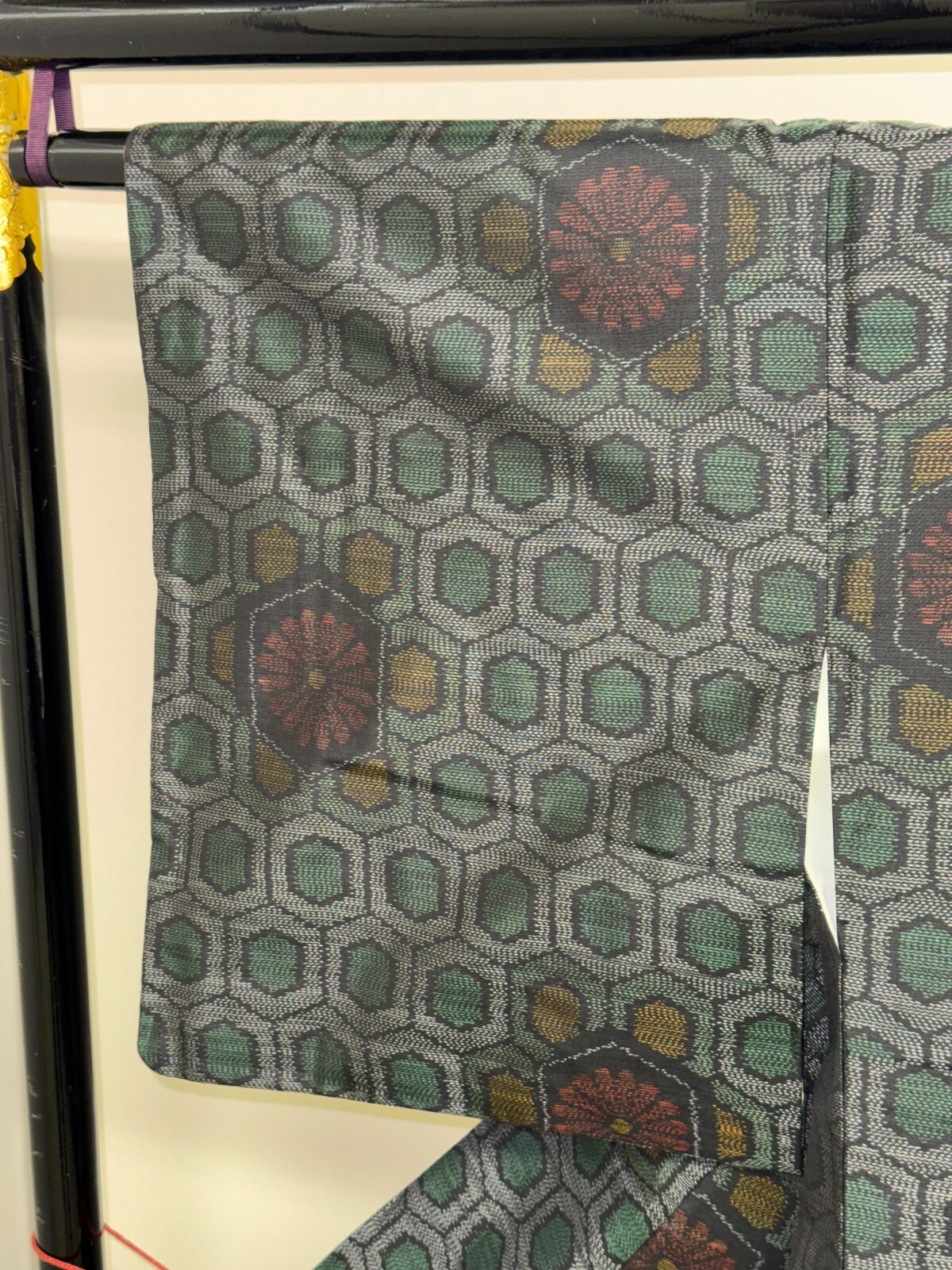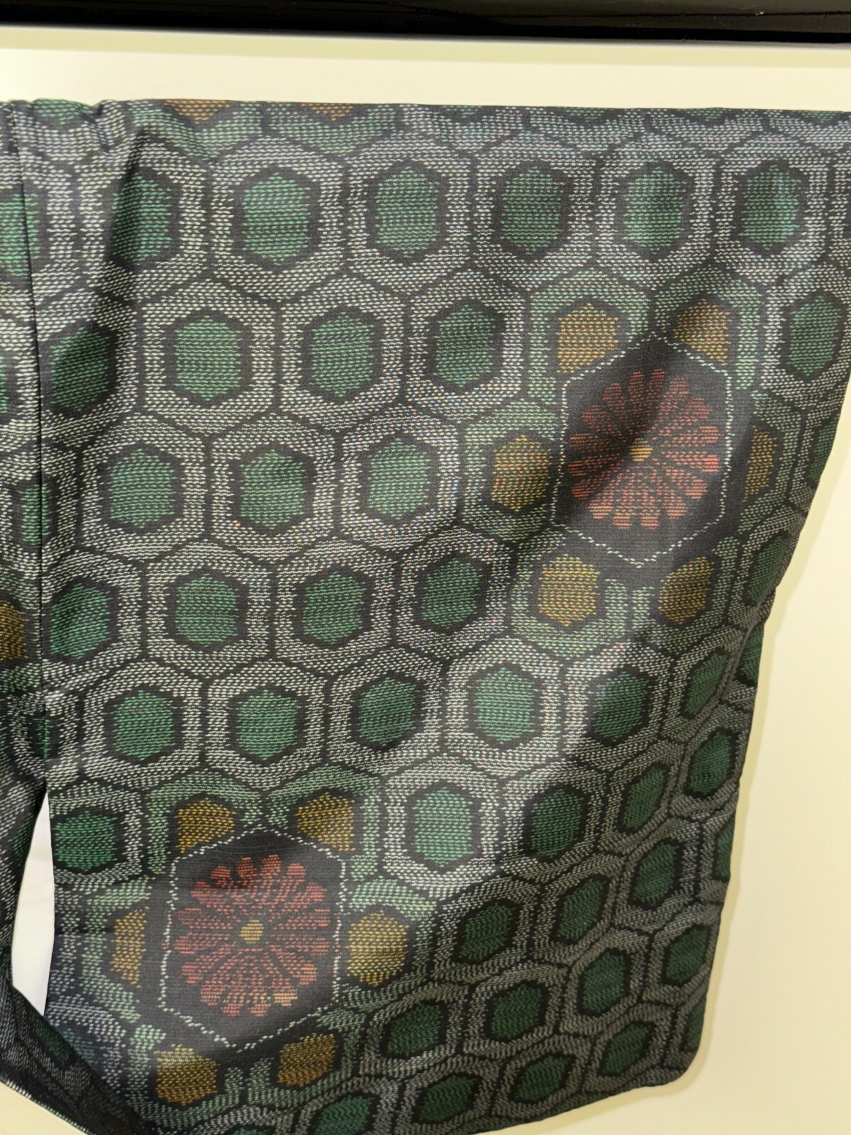 как выглядит Japanese Vintage Kimono Pure Silk Gray Oshima Expensive Dirt Height 62.59in фото