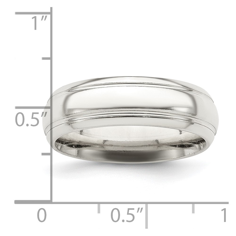 Sterling Silver 6mm Domed with Grooved Beveled Edge Fancy Band Ring Size 7