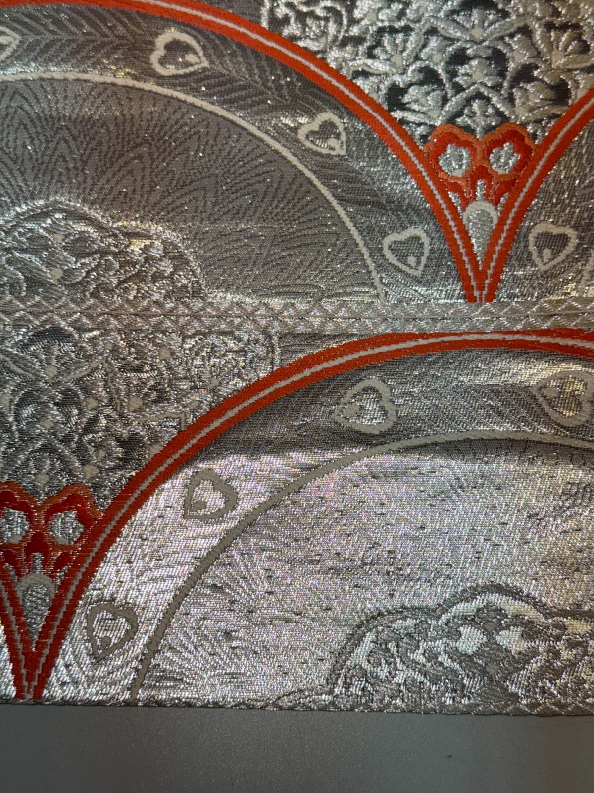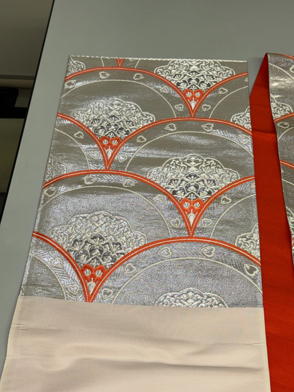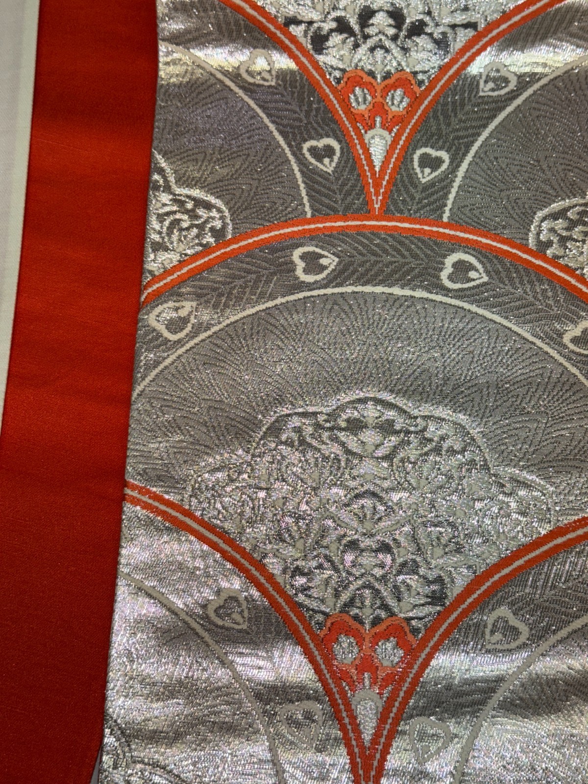 как выглядит Japanese Vintage Kimono Fukuro Obi Silk Silver Traditional embroidery 166x12in фото