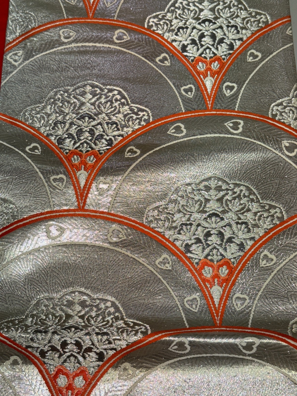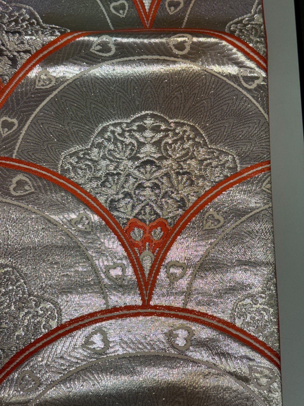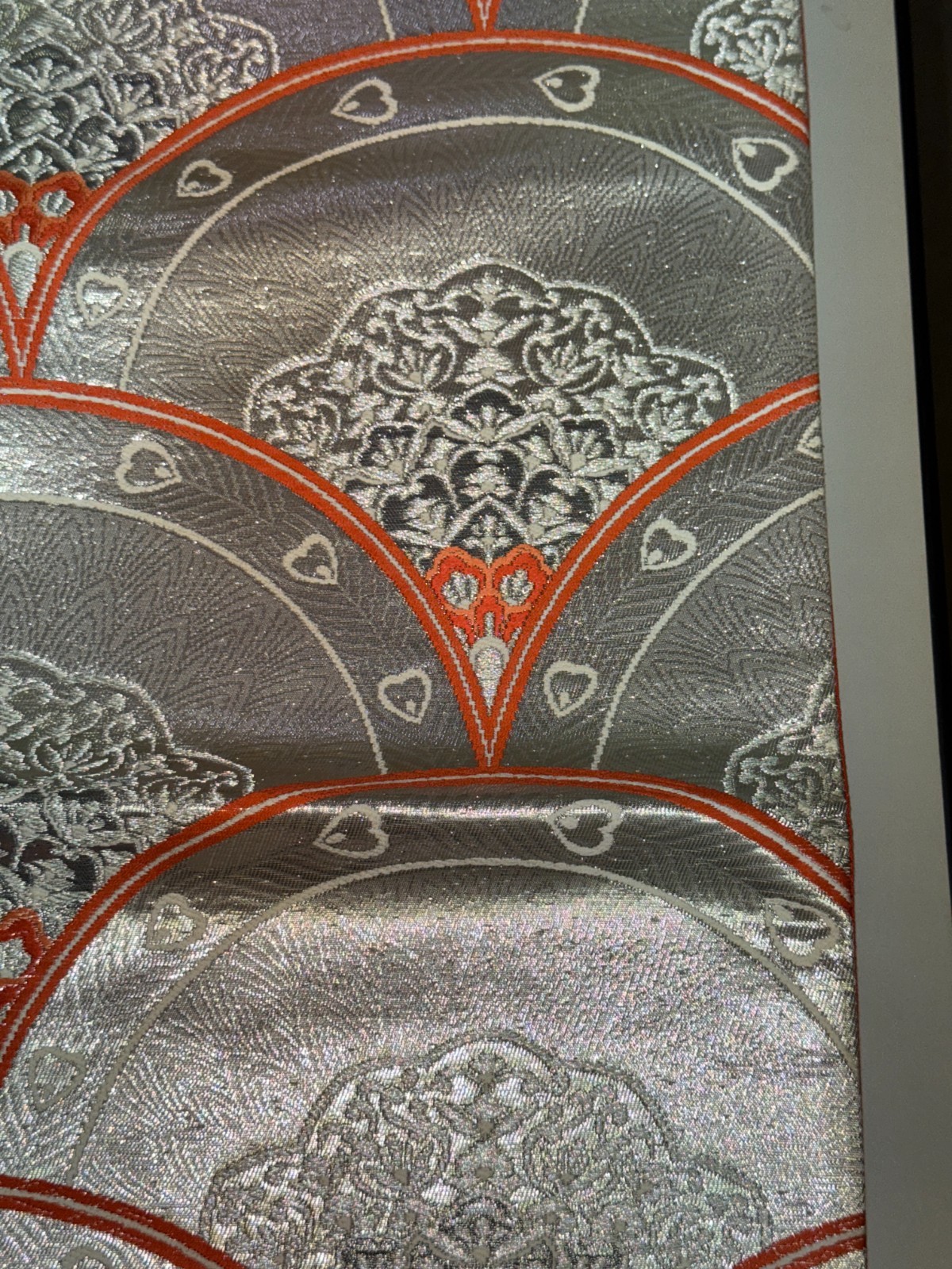 как выглядит Japanese Vintage Kimono Fukuro Obi Silk Silver Traditional embroidery 166x12in фото