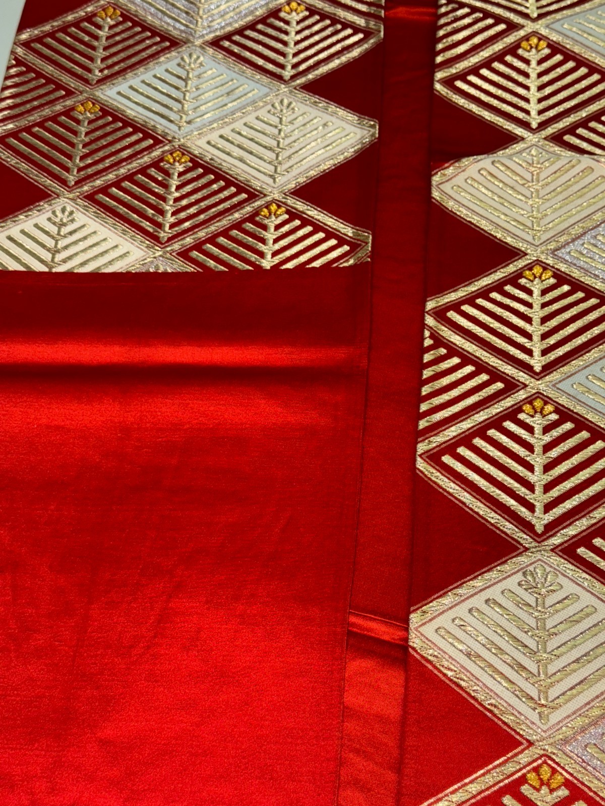 Japanese Vintage Kimono Fukuro Obi Silk Red Traditional embroidery 161x11in
