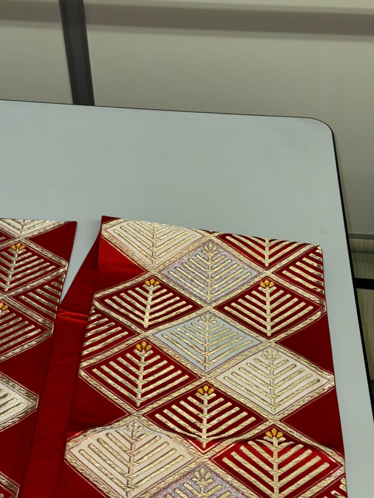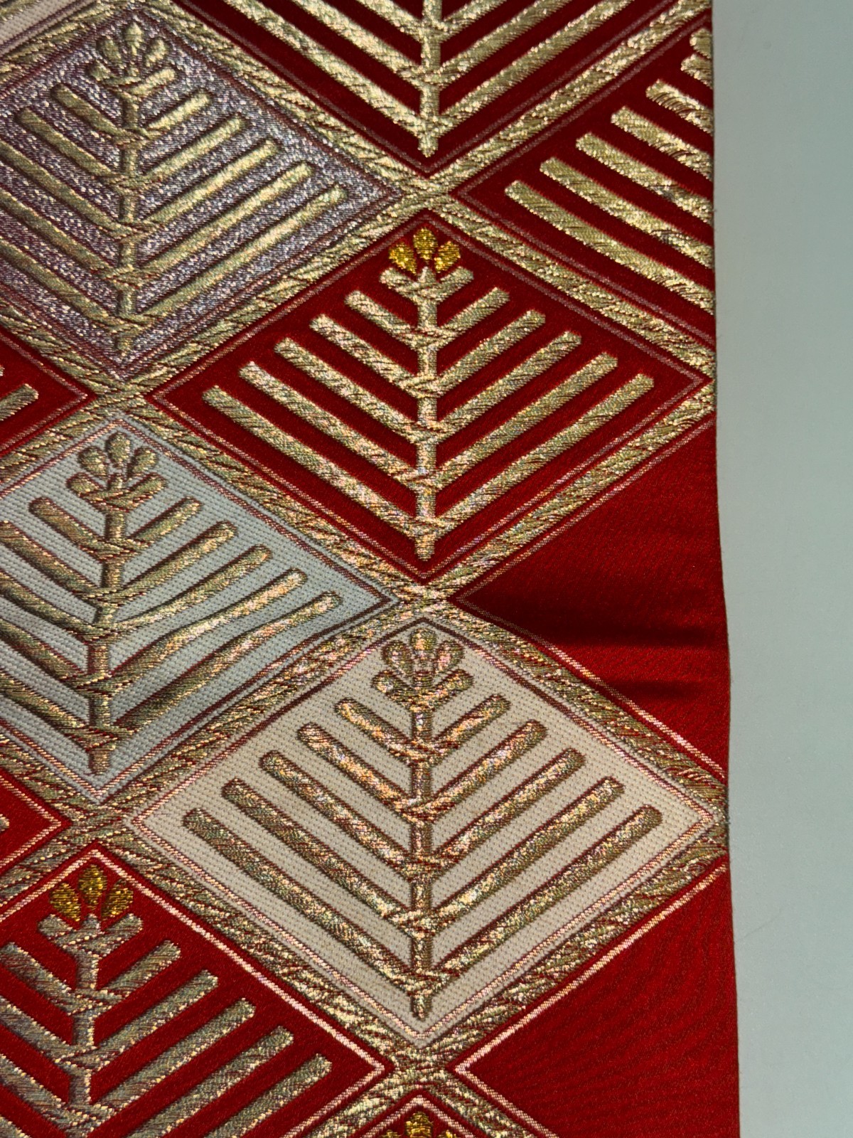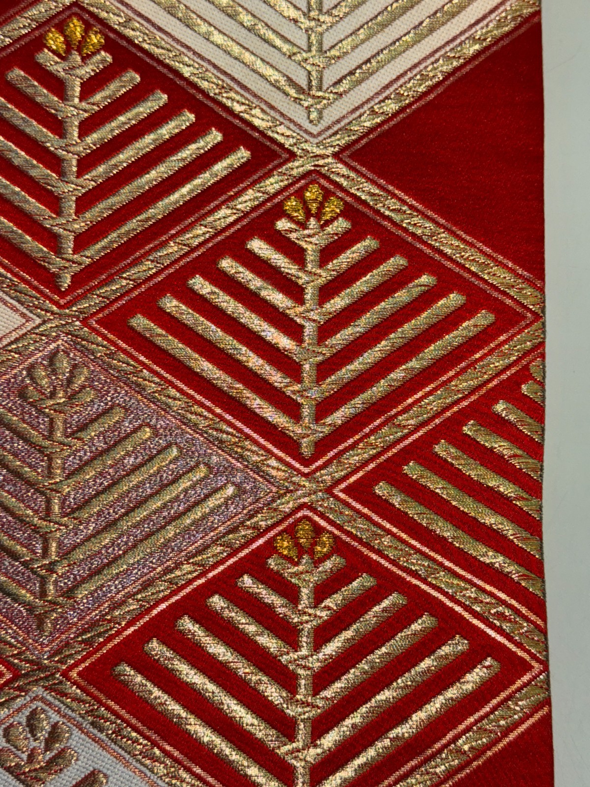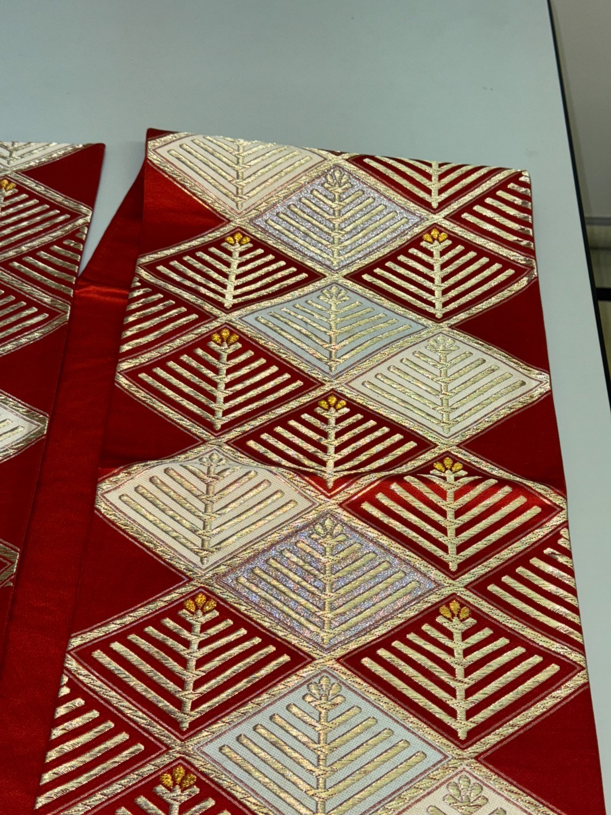 как выглядит Japanese Vintage Kimono Fukuro Obi Silk Red Traditional embroidery 161x11in фото
