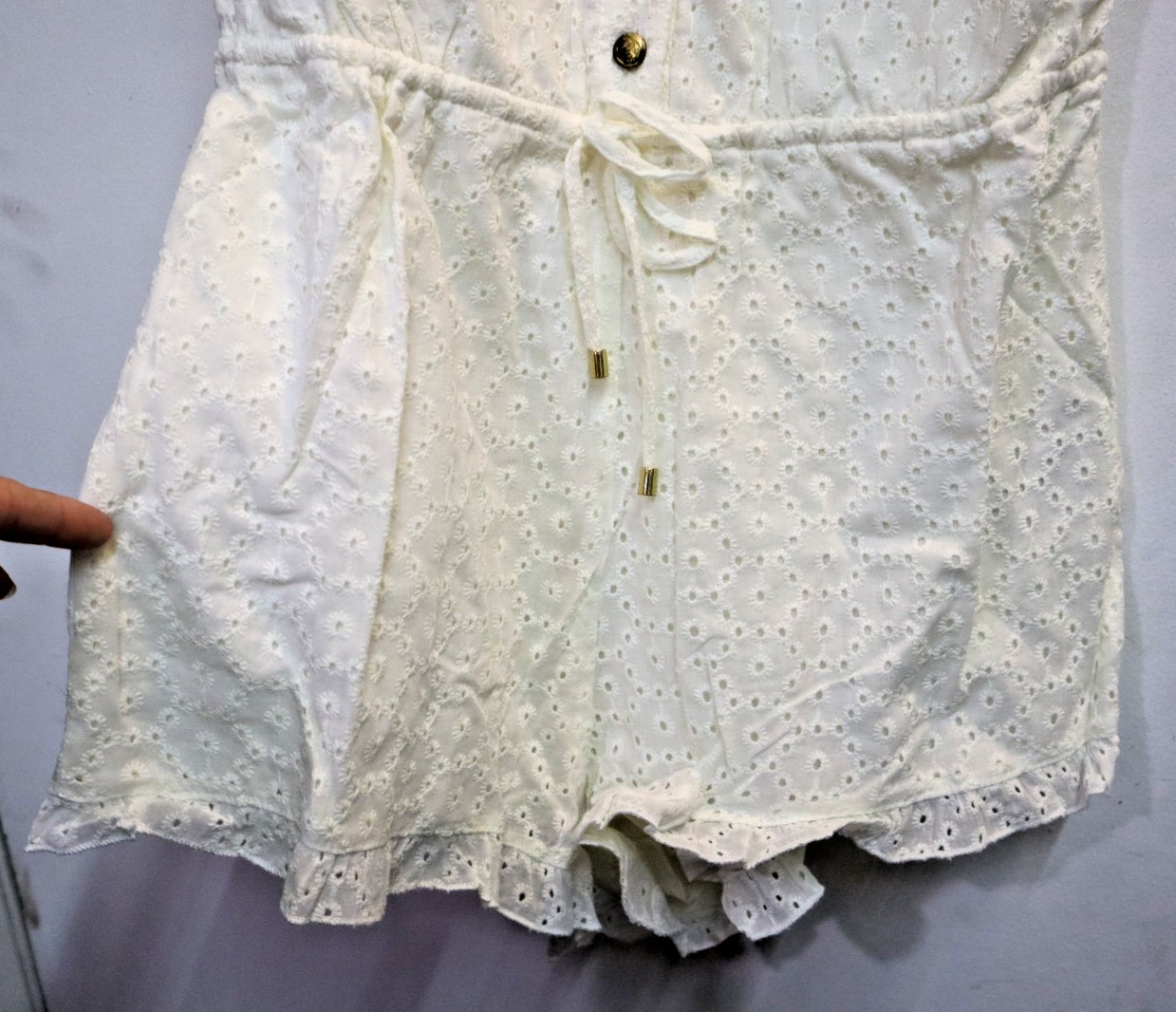 Sperry Women s Button Down Eyelet Lace Romper White Ruffle P92BD26 SZ: Small
