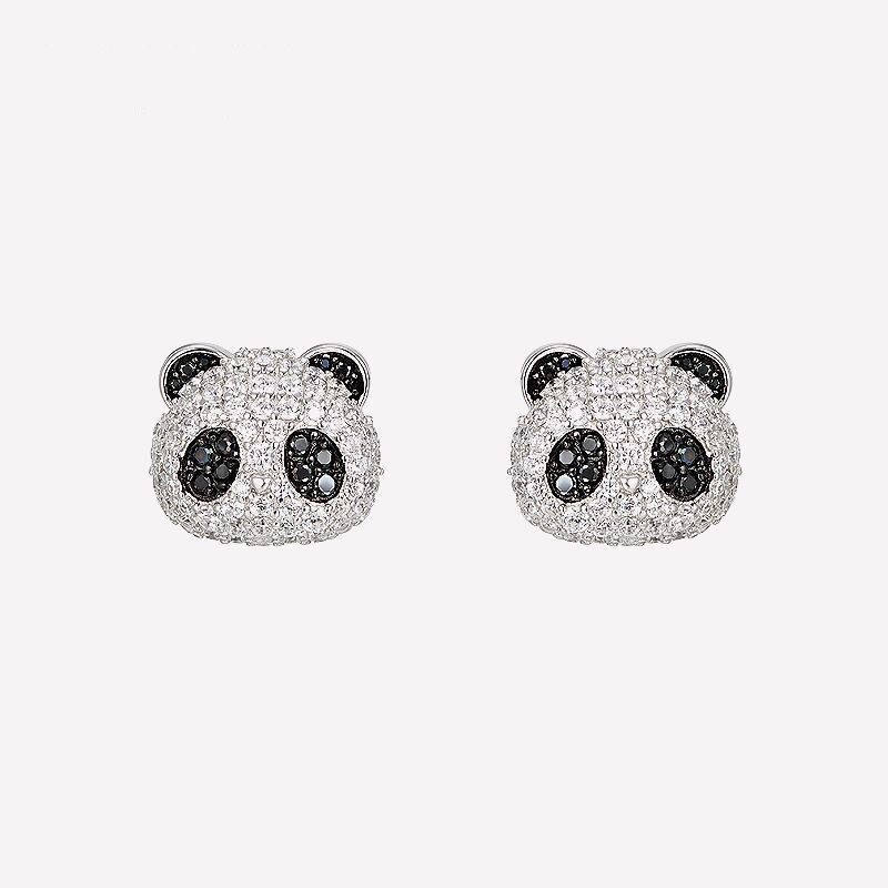 Small Rhinestone Panda 925 Silver Earrings for Little Girls Womens Jewelry Gift