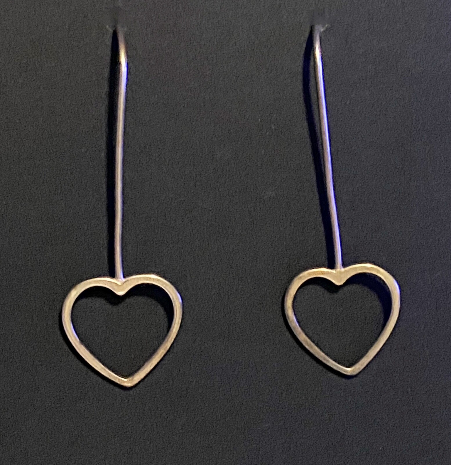 Handcrafted Sterling Silver 925 Minimalist Open HEART Dangle Drop Earrings