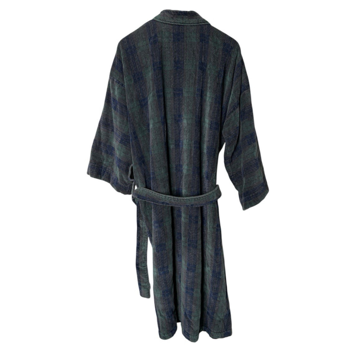 Vintage Christian Dior Robe Plaid Terry Cloth Green Blue Men One Size Fits Most