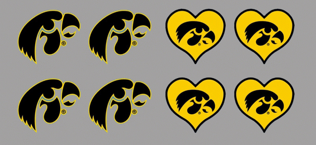 8PC Iowa Hawkeyes Waterless Peel Stick Temporary Tattoos Heart/ Head Logo