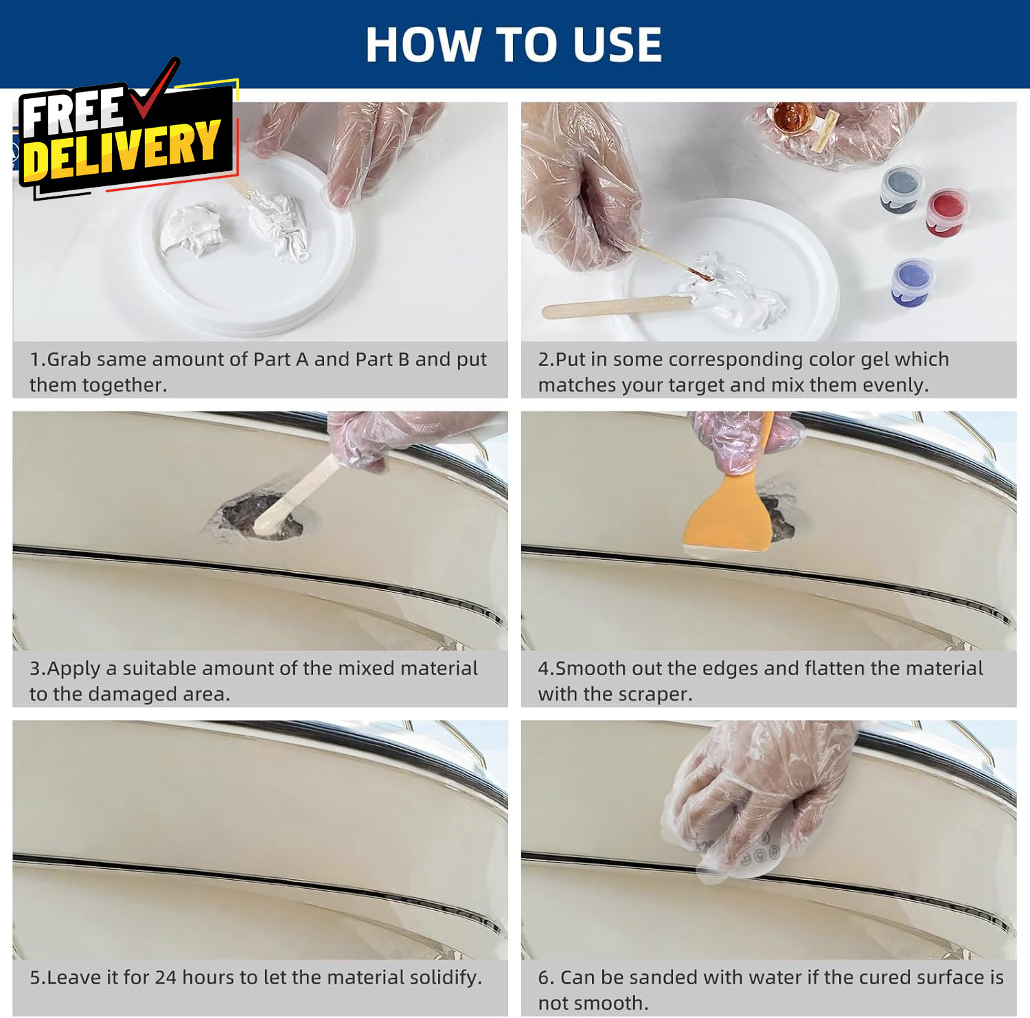 Fiberglass Boat Repair Kit Color Match Gel Coat Repair Kit for Boats Marine F...