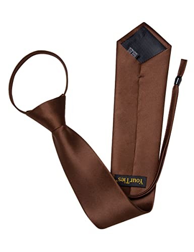 3.15'' Zipper Tie Set Adjustable Pre-tied Neck Ties Solid Mens Tie and Brown