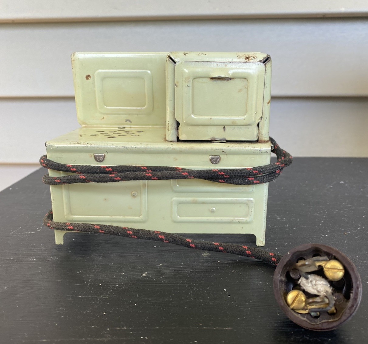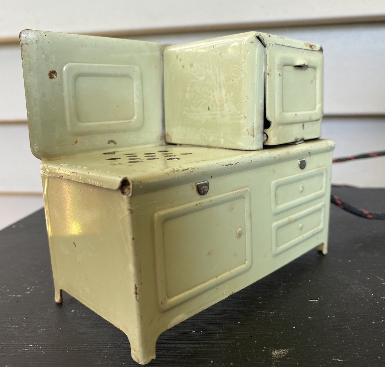 Vintage 1930's Kingston/Girard Metal Kids Toy Stove Green With Door Cord
