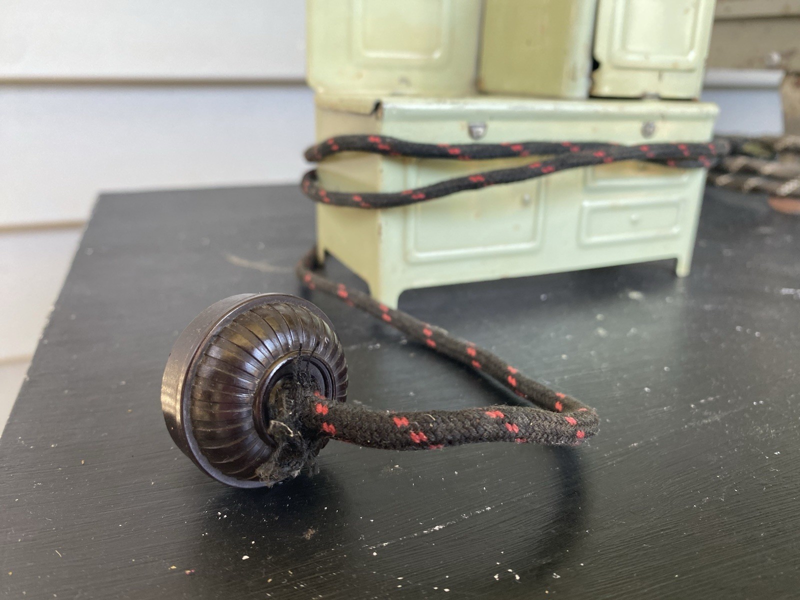 как выглядит Vintage 1930s Kingston/Girard  Metal Kids Toy Stove Green With Door Cord фото