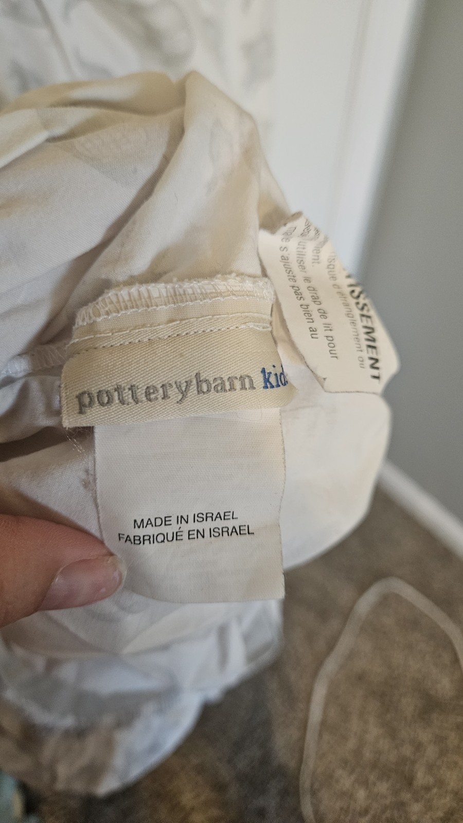 Pottery Barn Kids Taylor Elephant White Gray Fitted Crib Sheet