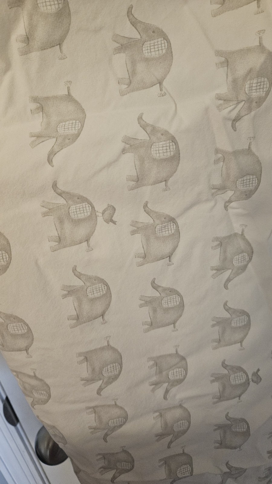 как выглядит Pottery Barn Kids Taylor Elephant White Gray Fitted Crib Sheet фото