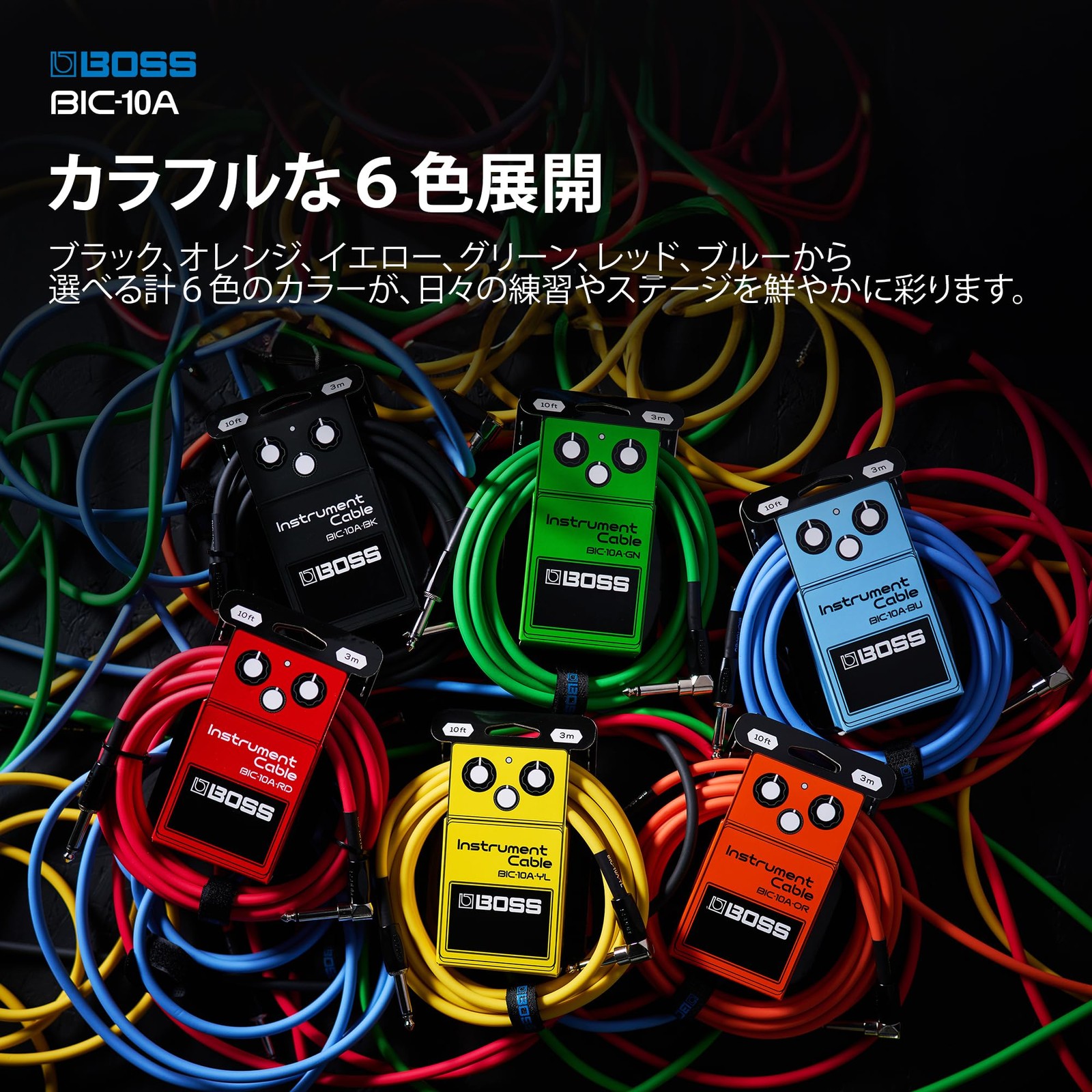 BOSS BIC-10A-RD Guitar Cable, Red,3m,L-Shaped-Straight,Oxygen-Free,Braided Cable