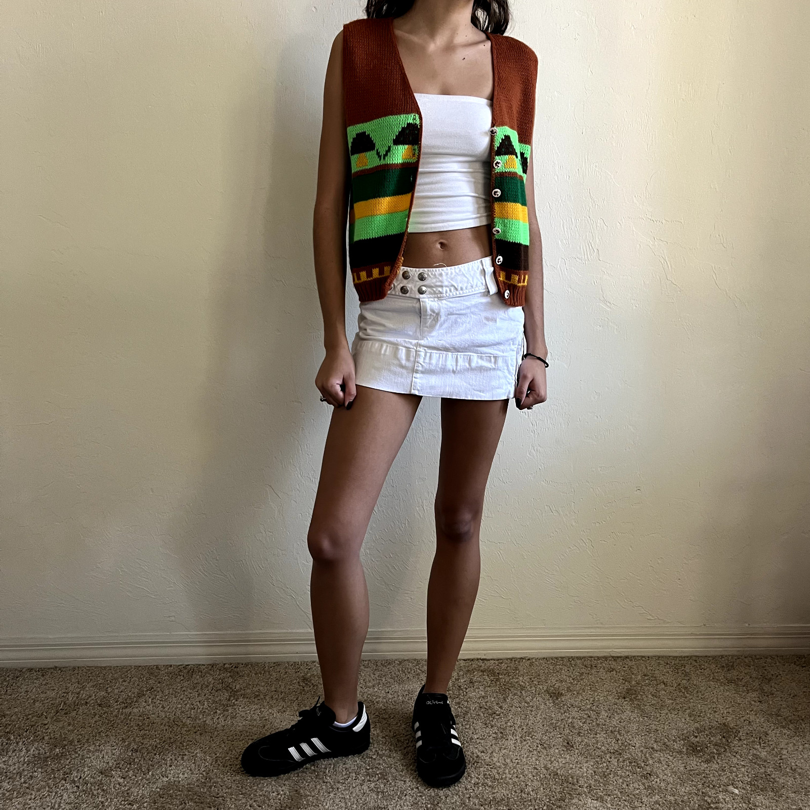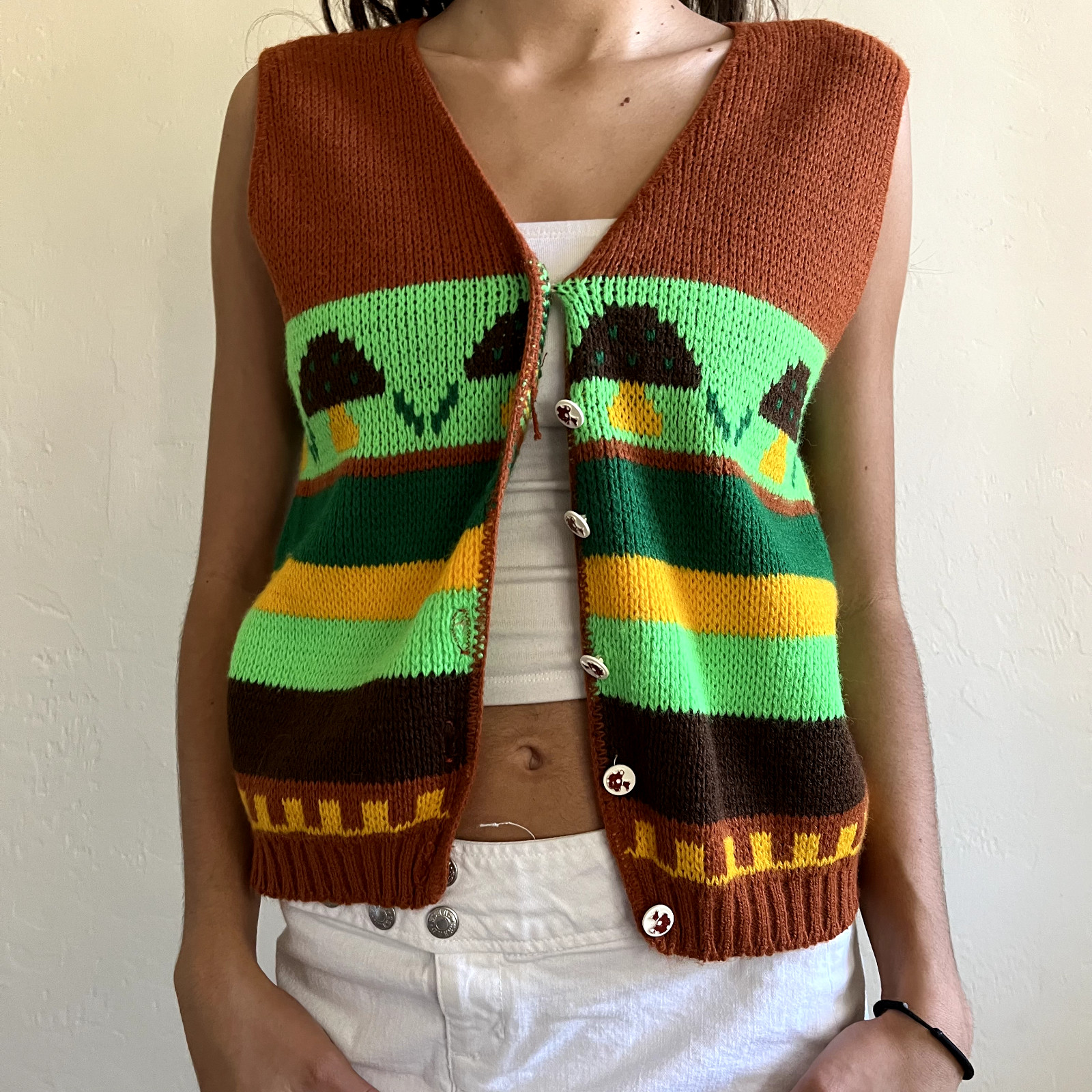 как выглядит Vintage 1970s Colleen Knitwear Sweater Vest Novelty Print Psychedelic Mushroom фото