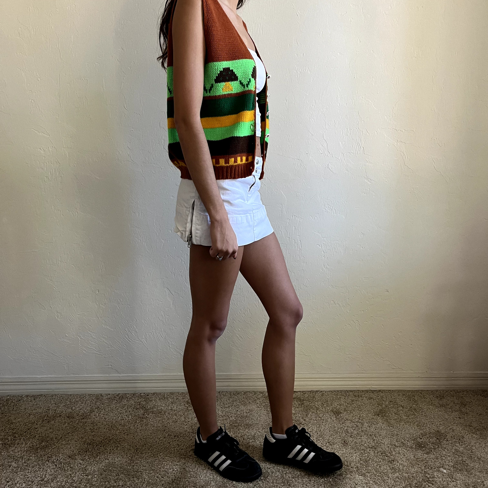 Vintage 1970s Colleen Knitwear Sweater Vest Novelty Print Psychedelic Mushroom