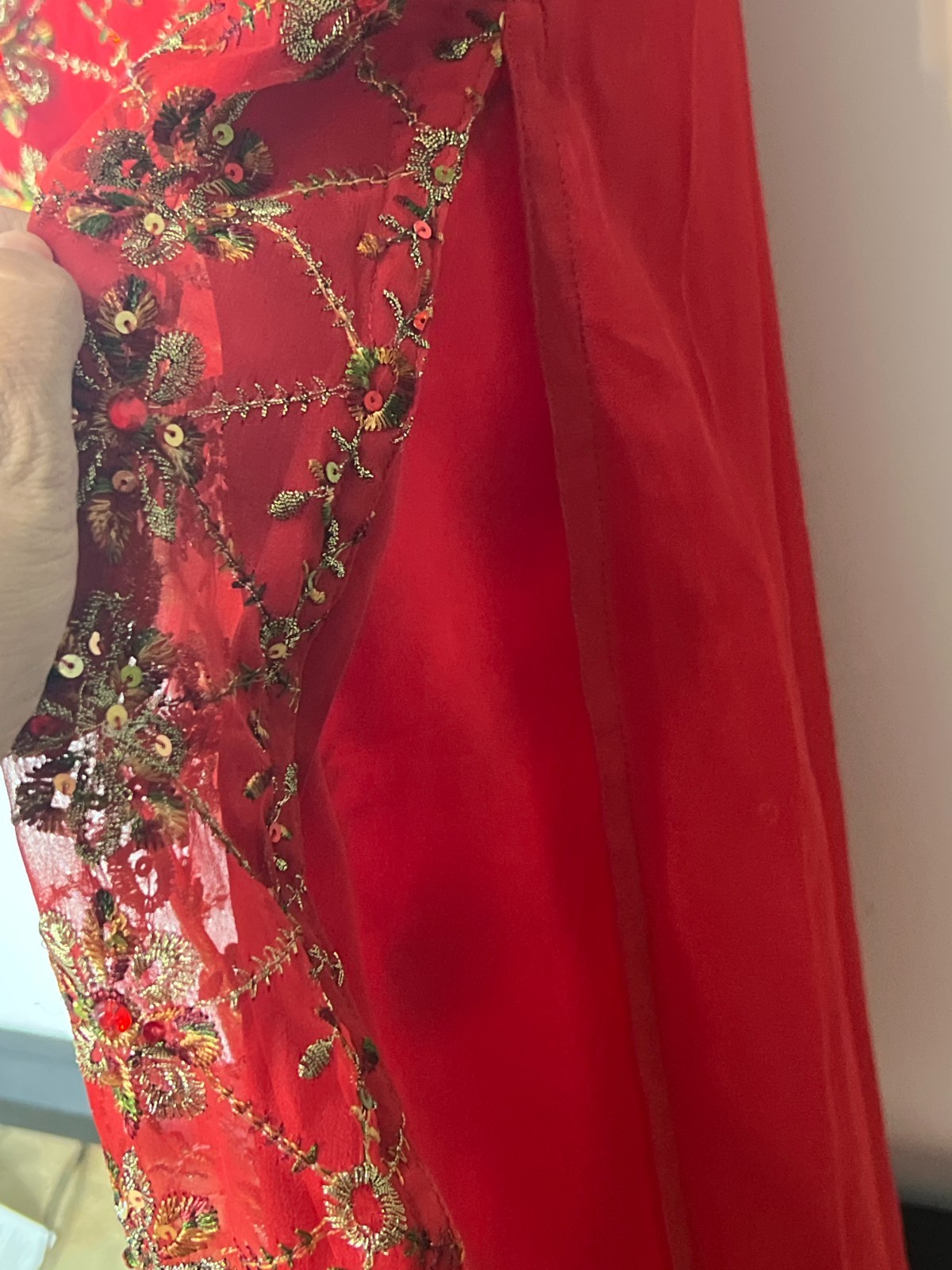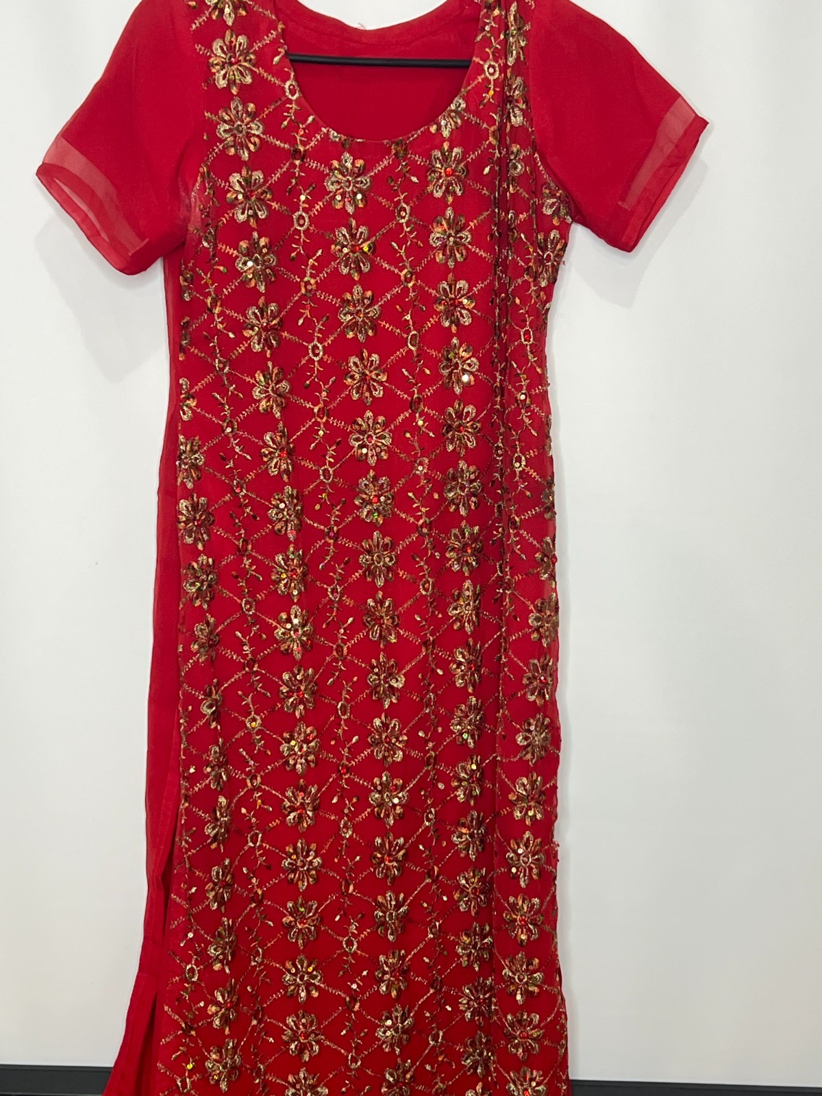 как выглядит Handmade Red Indian Kurti Tunic Dress Floral Sequin Embroidery  Size M 19x44 фото