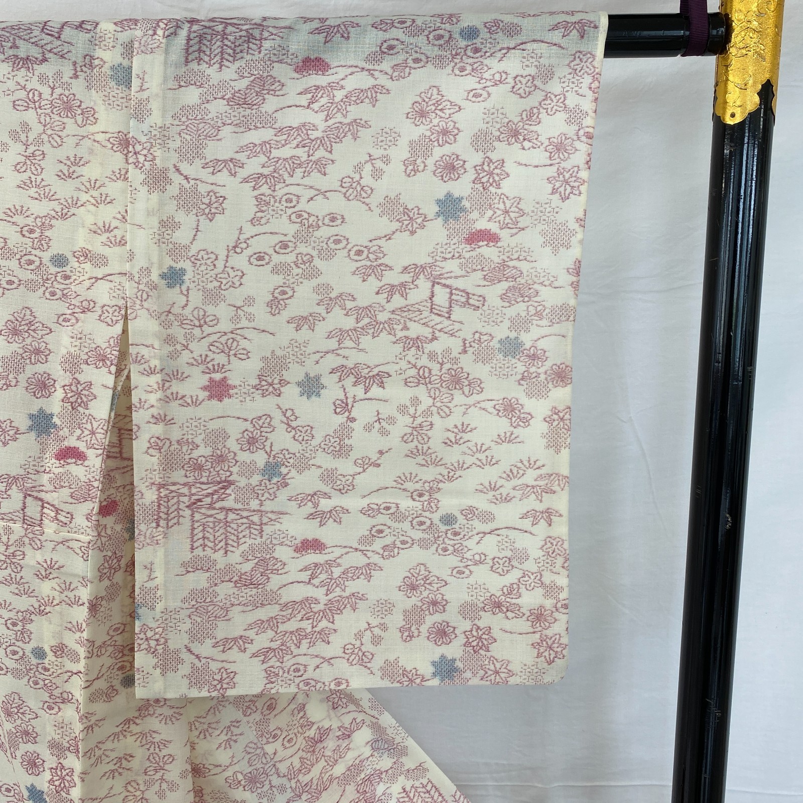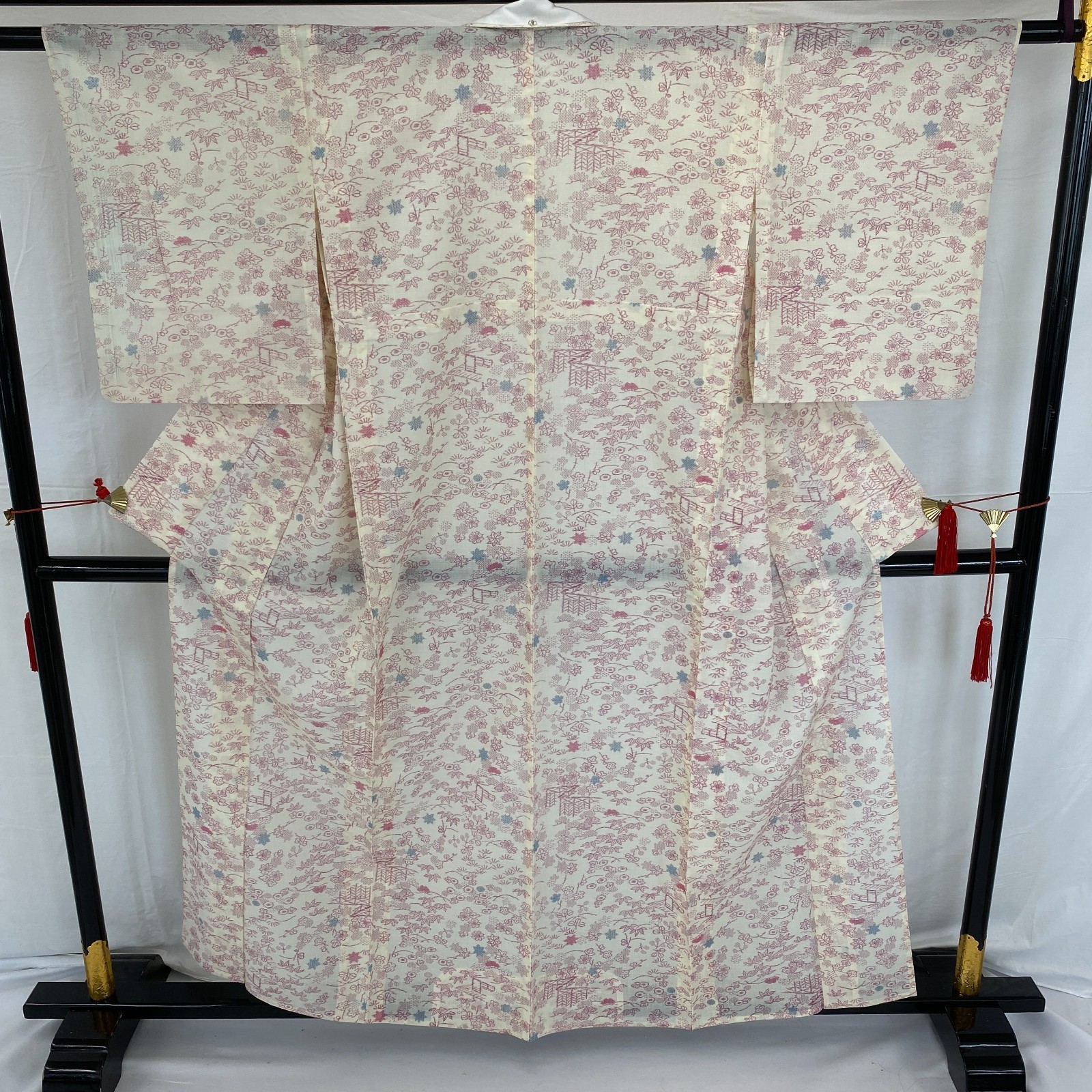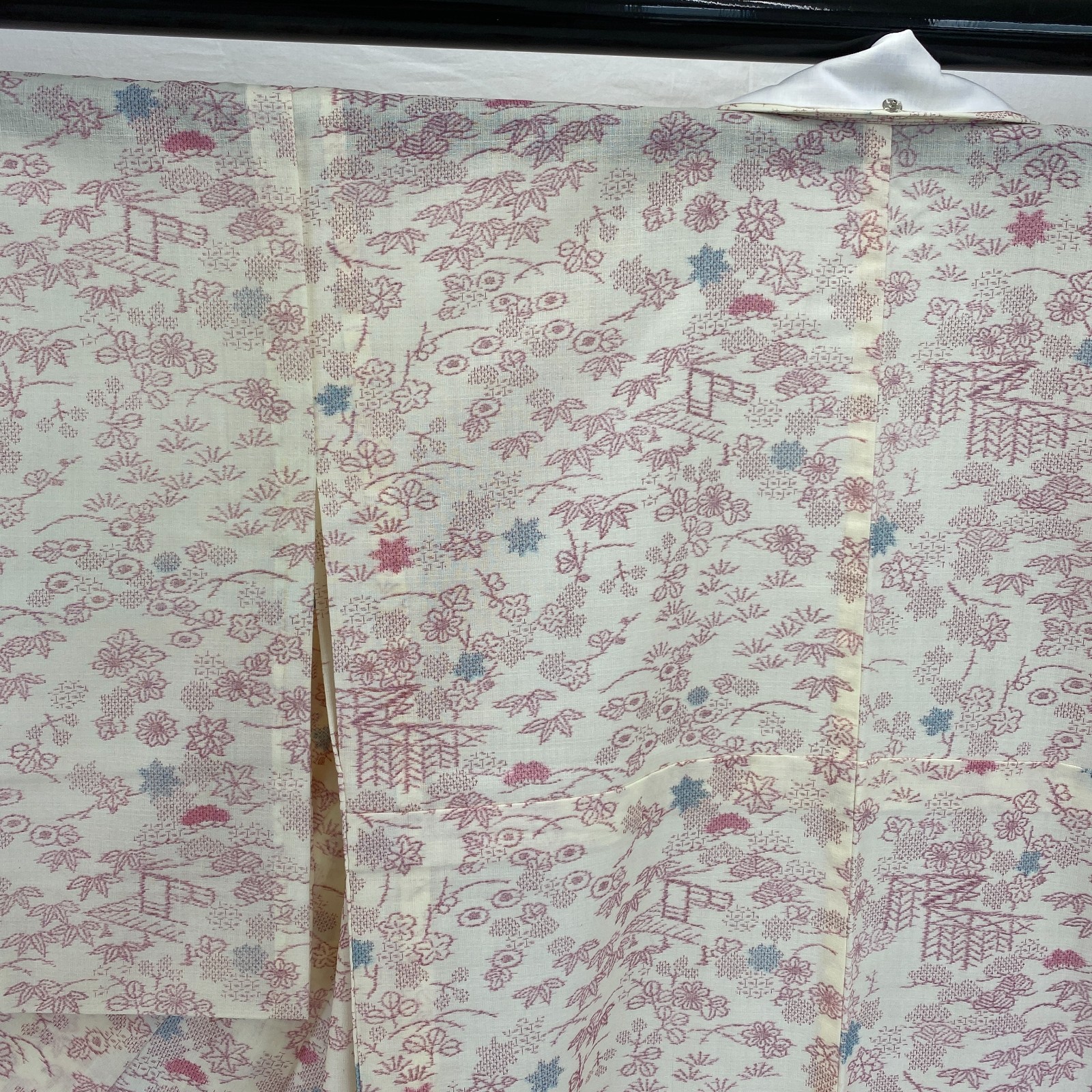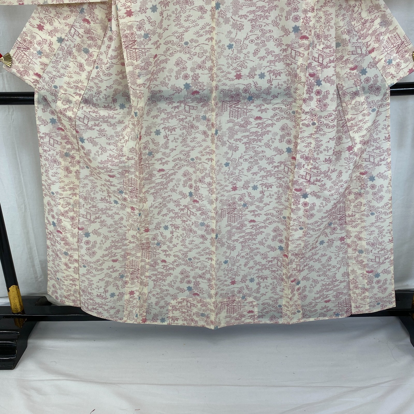 как выглядит Japanese Vintage Kimono Silk White No Lining Komon Traditional Length 61in фото