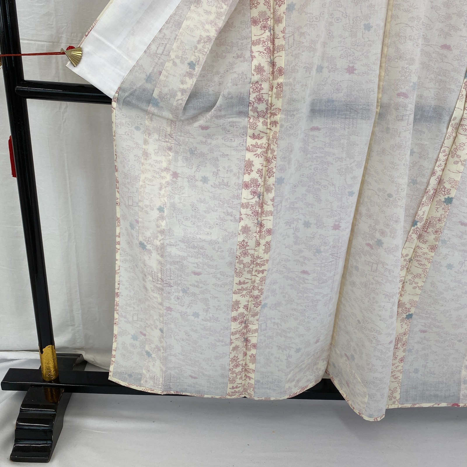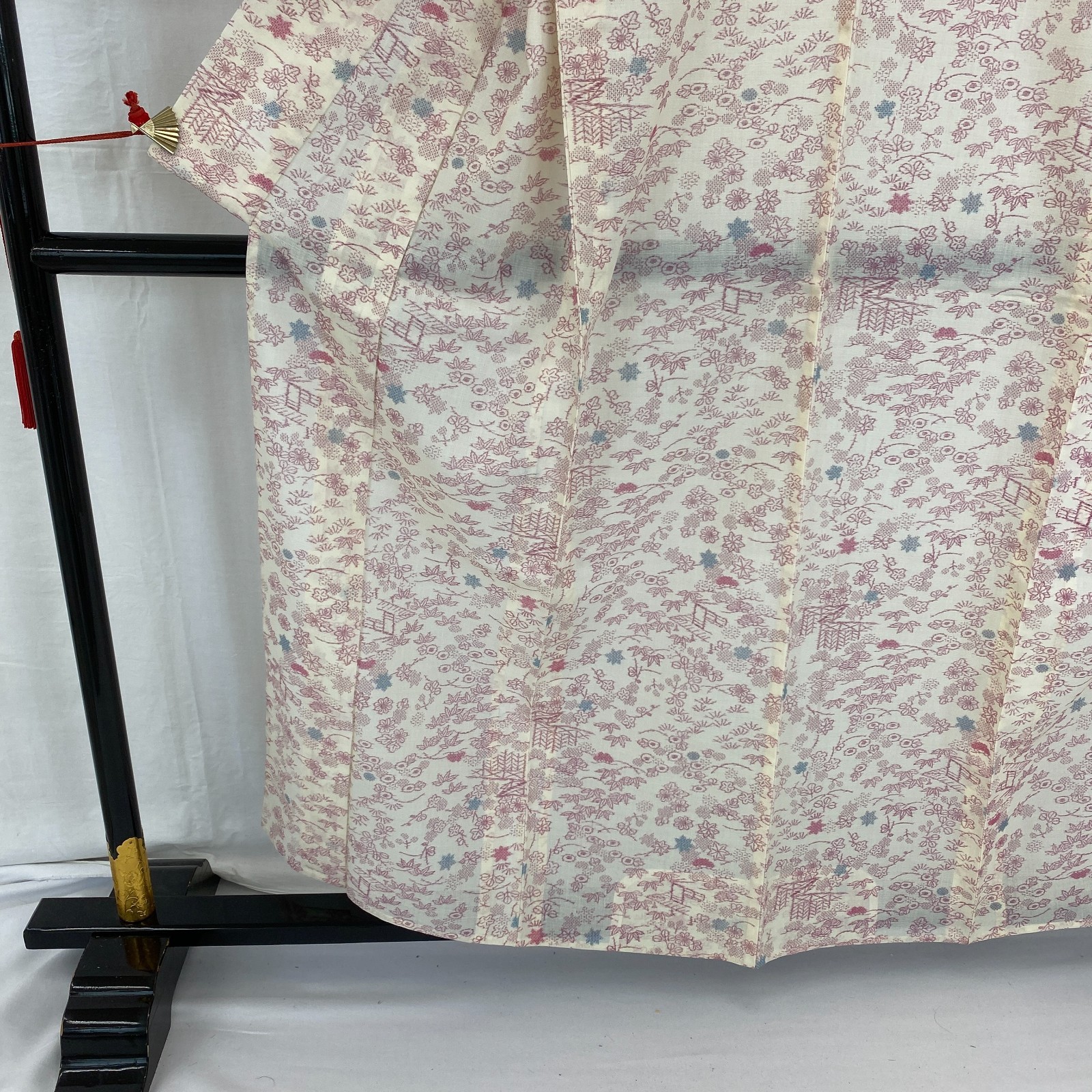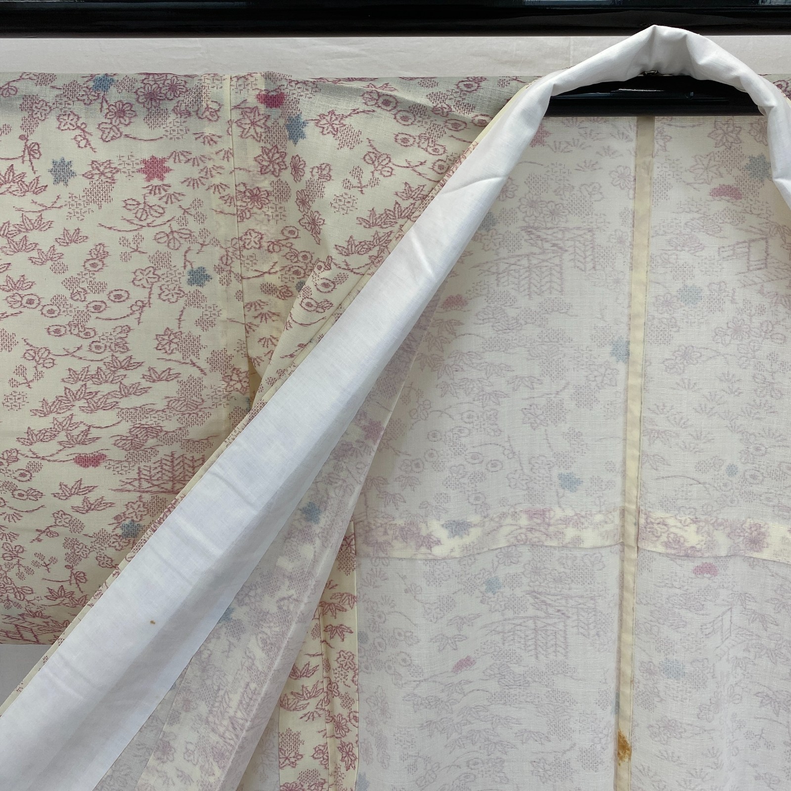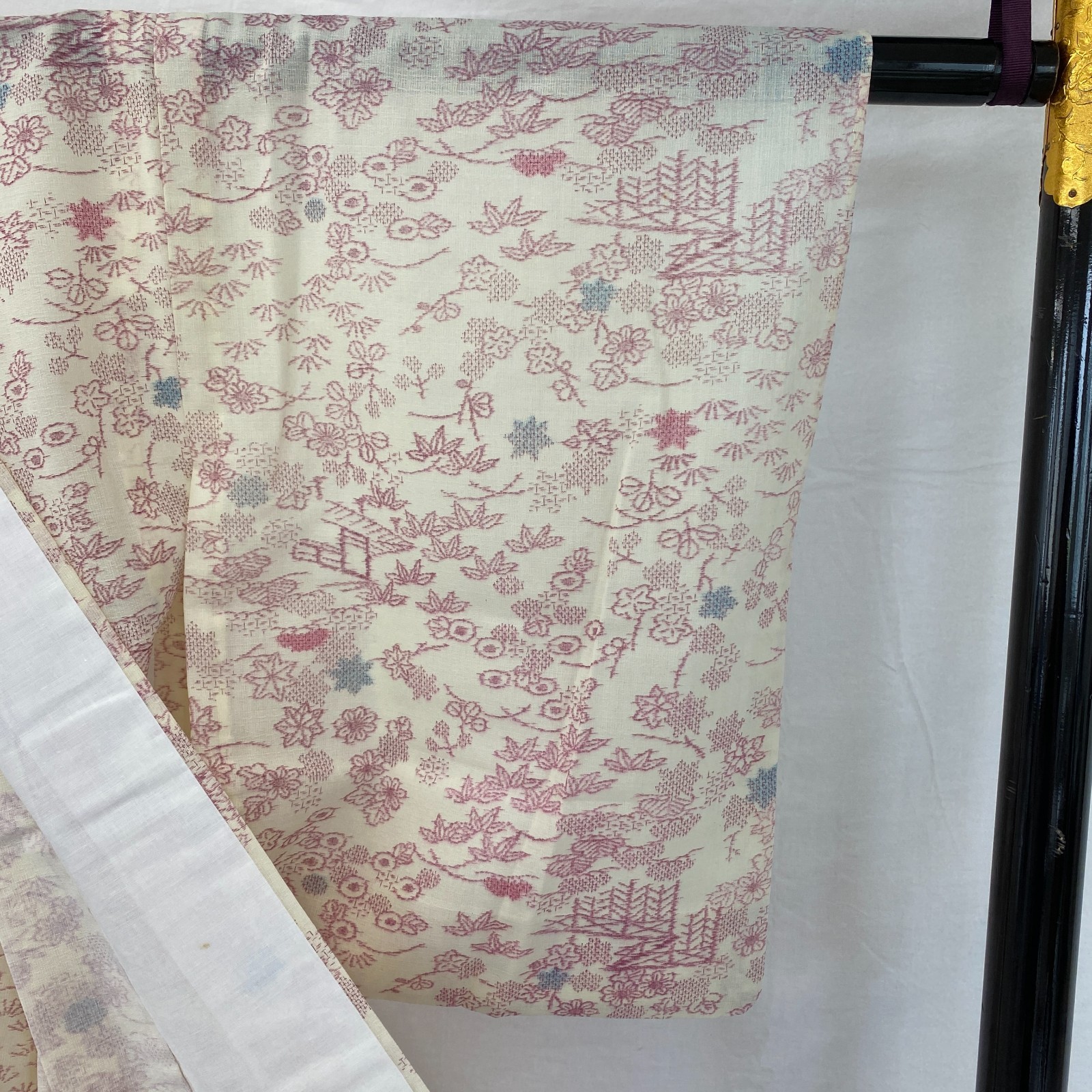 как выглядит Japanese Vintage Kimono Silk White No Lining Komon Traditional Length 61in фото