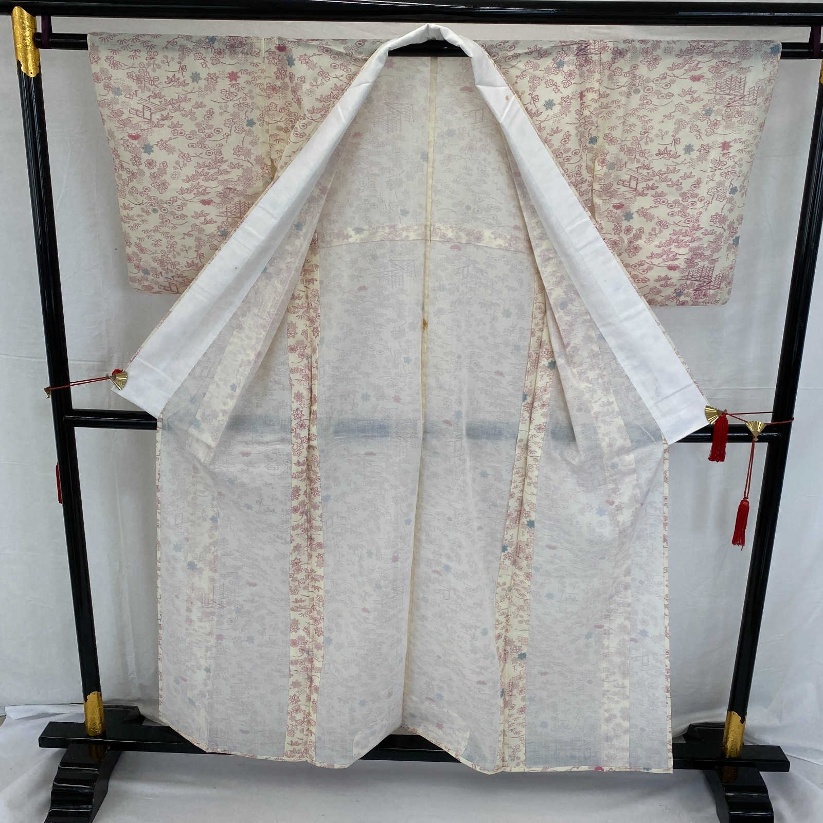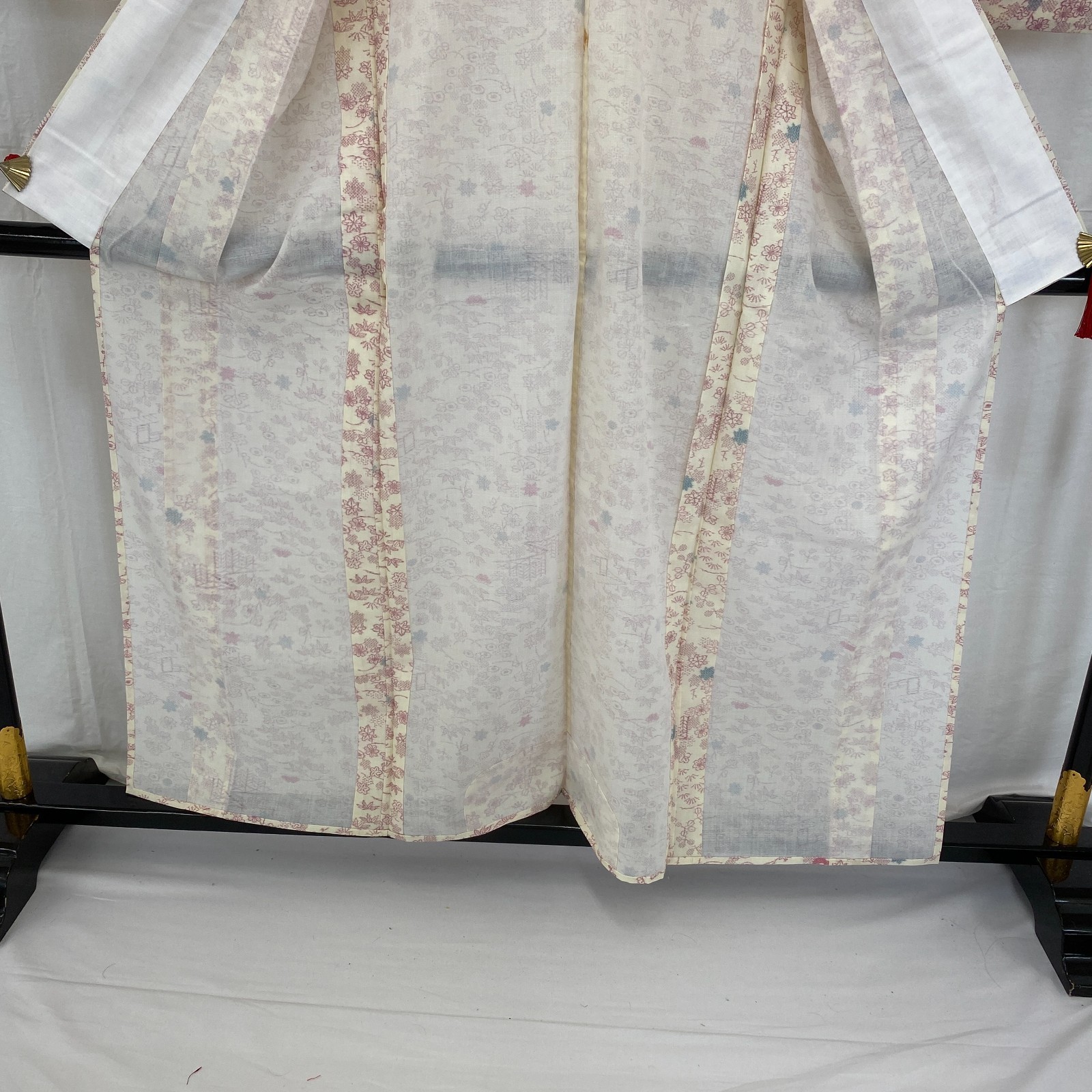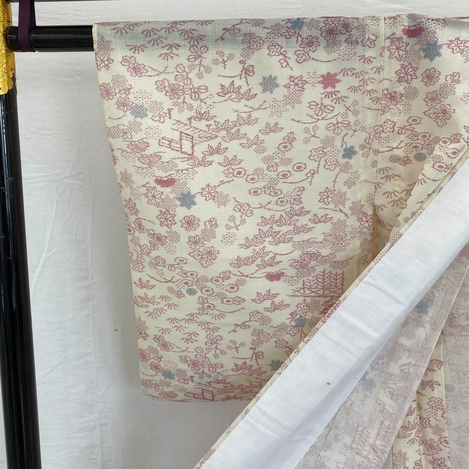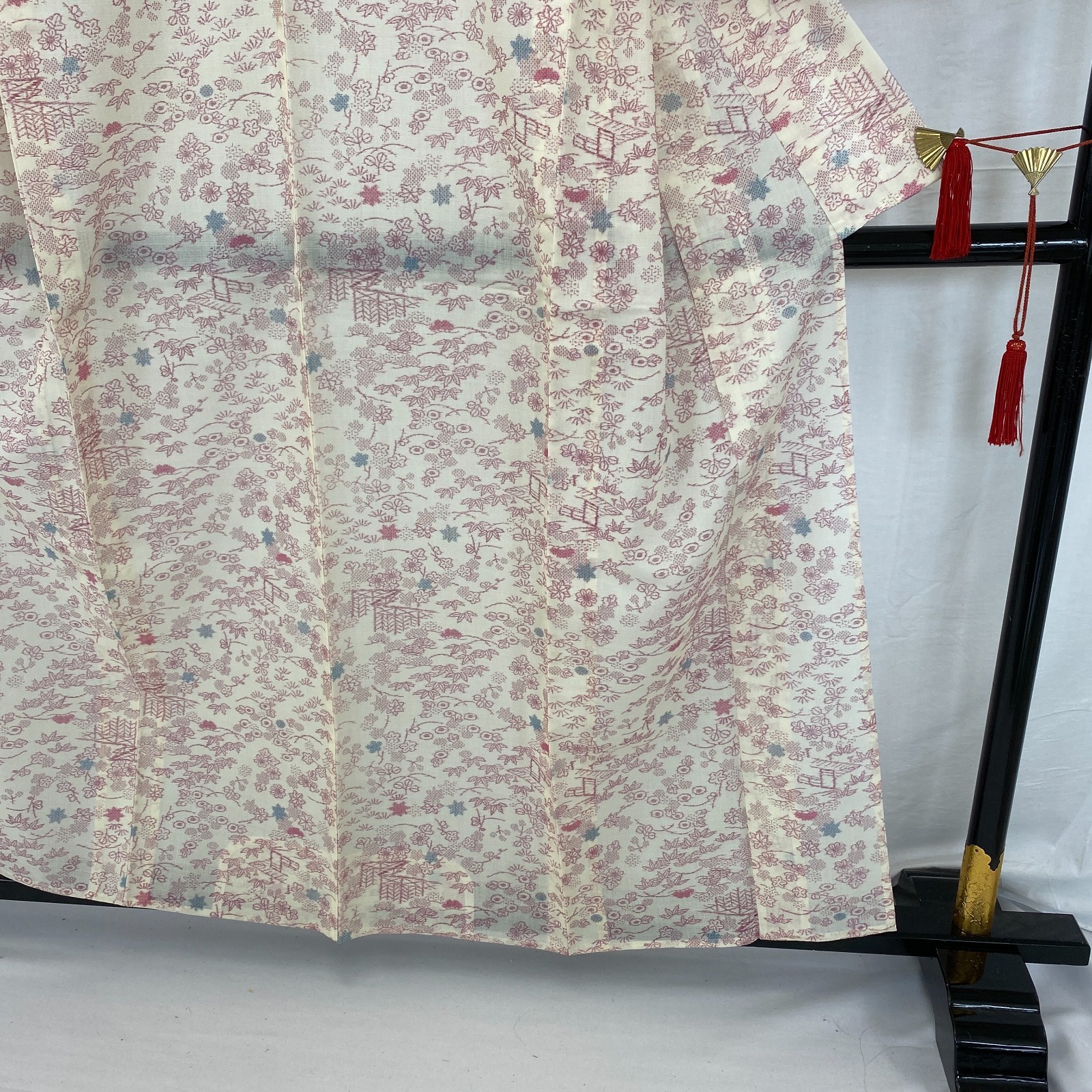 как выглядит Japanese Vintage Kimono Silk White No Lining Komon Traditional Length 61in фото