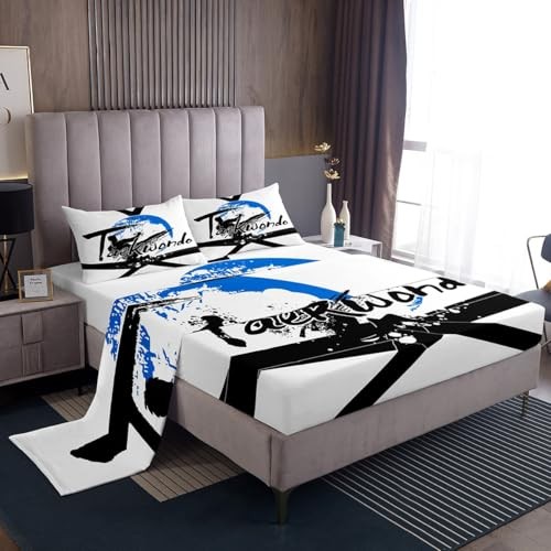 Gift for Boys Bed Sheet Set King,Taekwondo Kung King W78 L80 H16 Black Blue