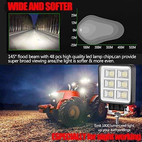 LED Tractor Lights 2 Pcs 4 Inch Flood 12V Square LED Driving Work Lights for
