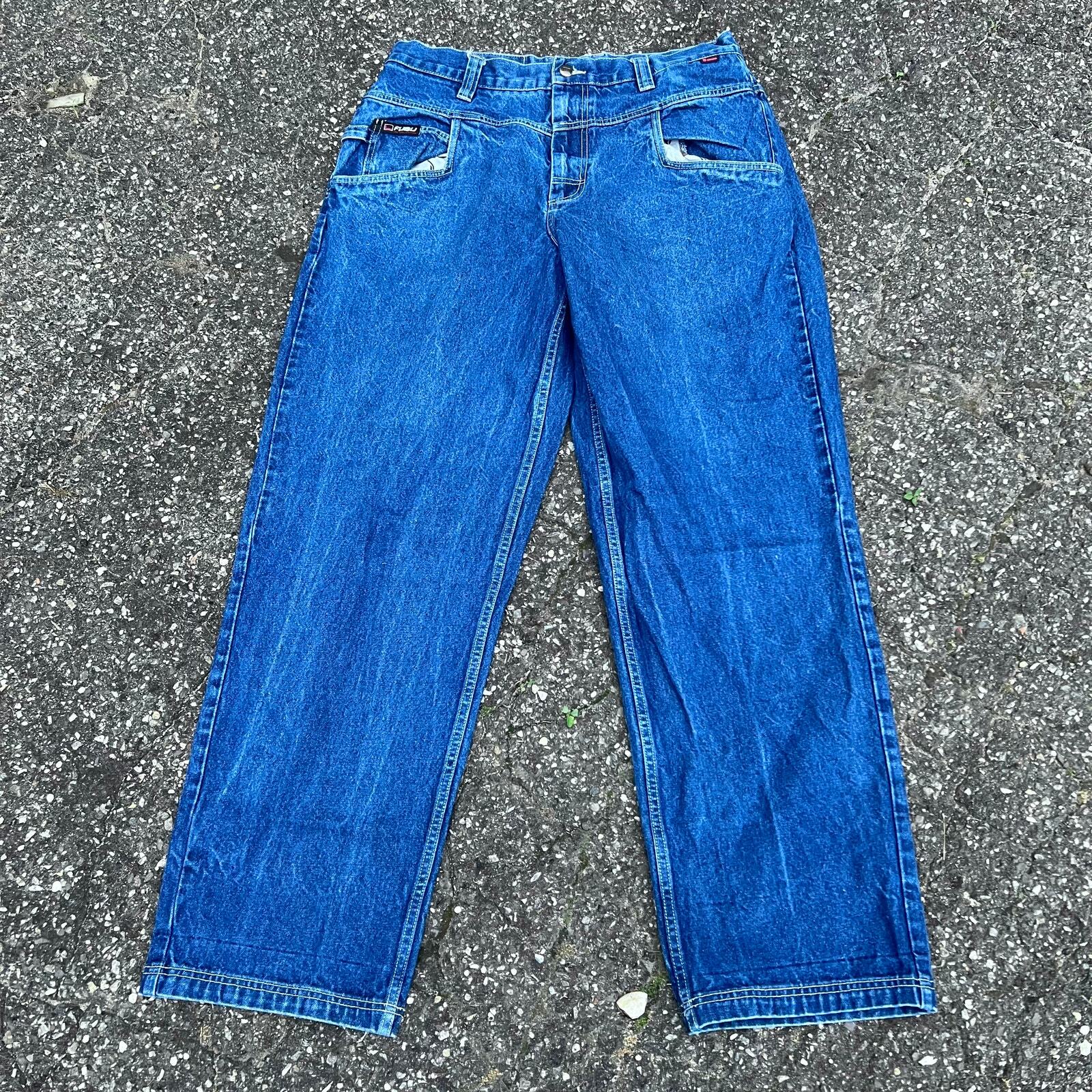 как выглядит Vintage Y2K fubu baggy denim blue jeans pants фото