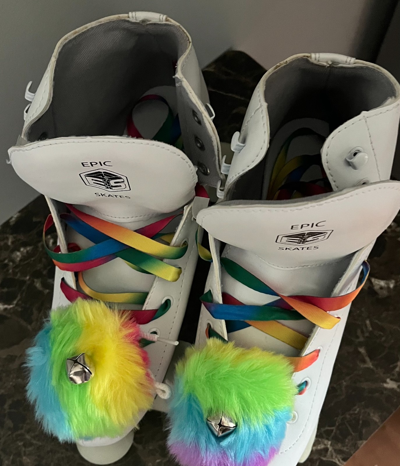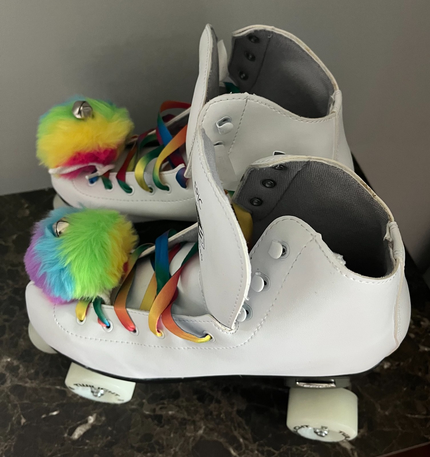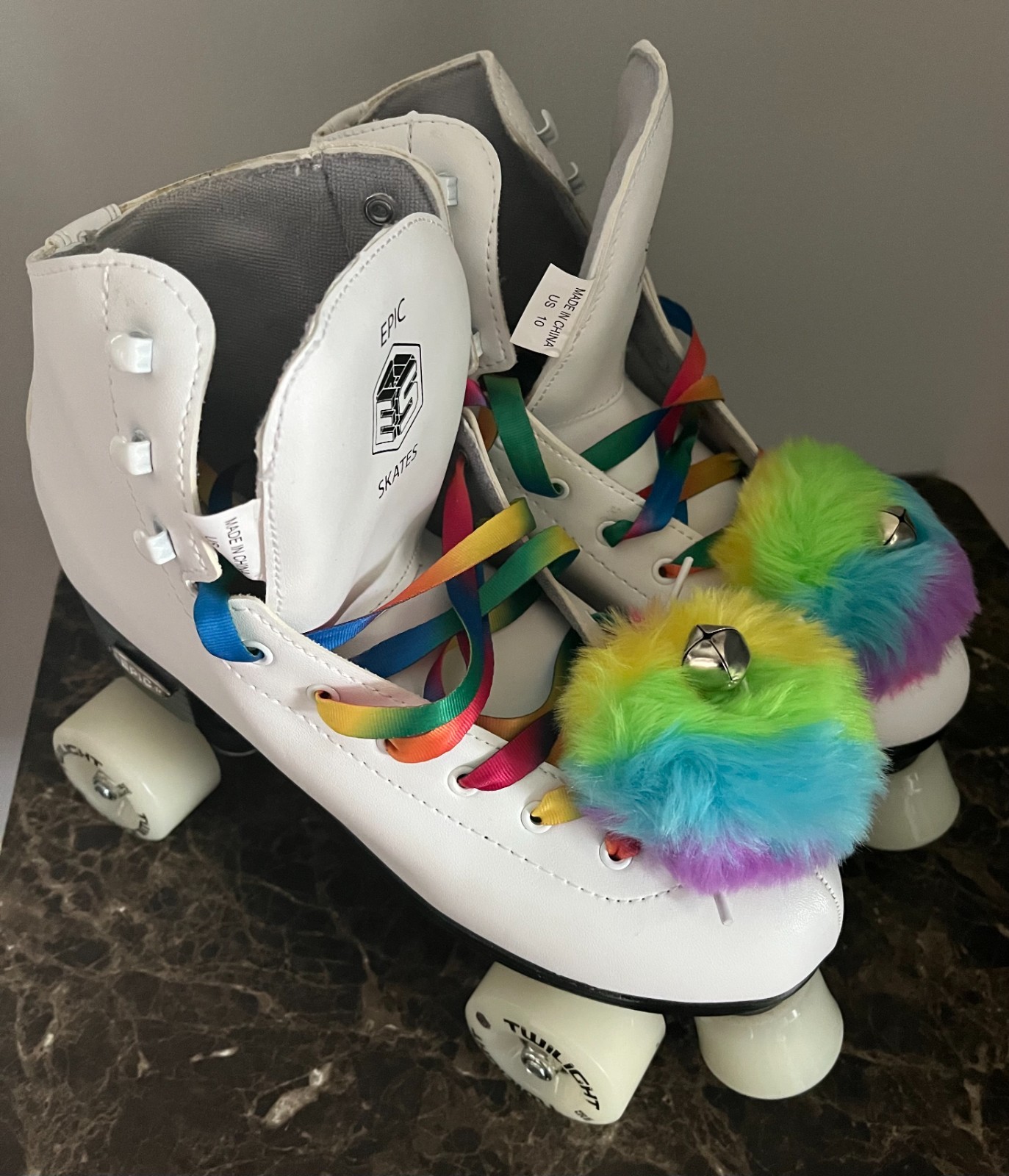 как выглядит Epic Allure Quad Roller Skates w/ Rainbow Twilight LED Light Up Wheels PomPoms фото