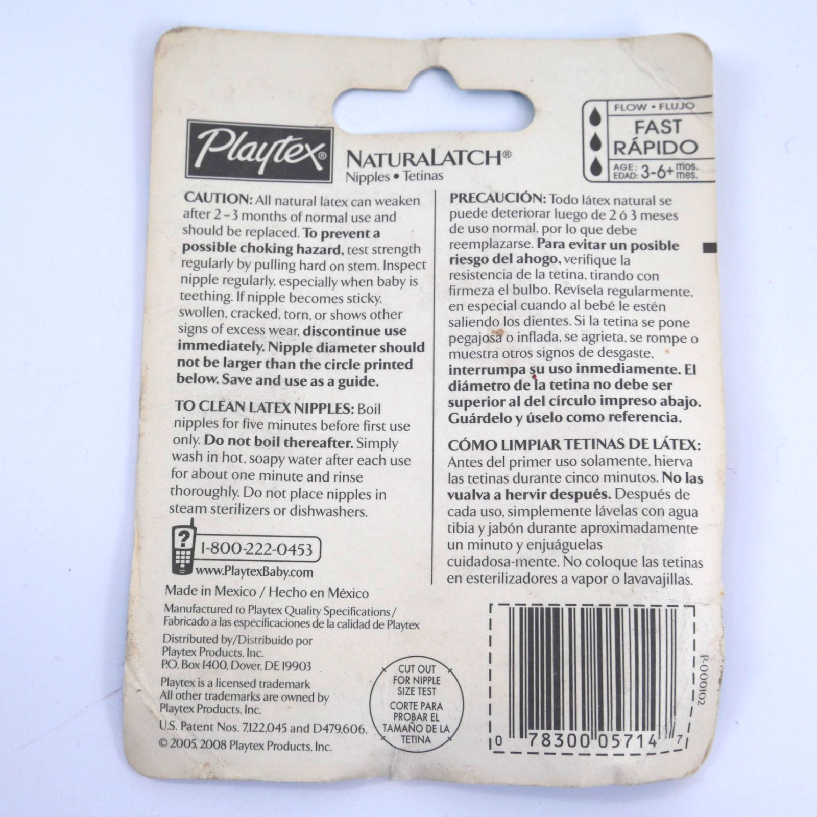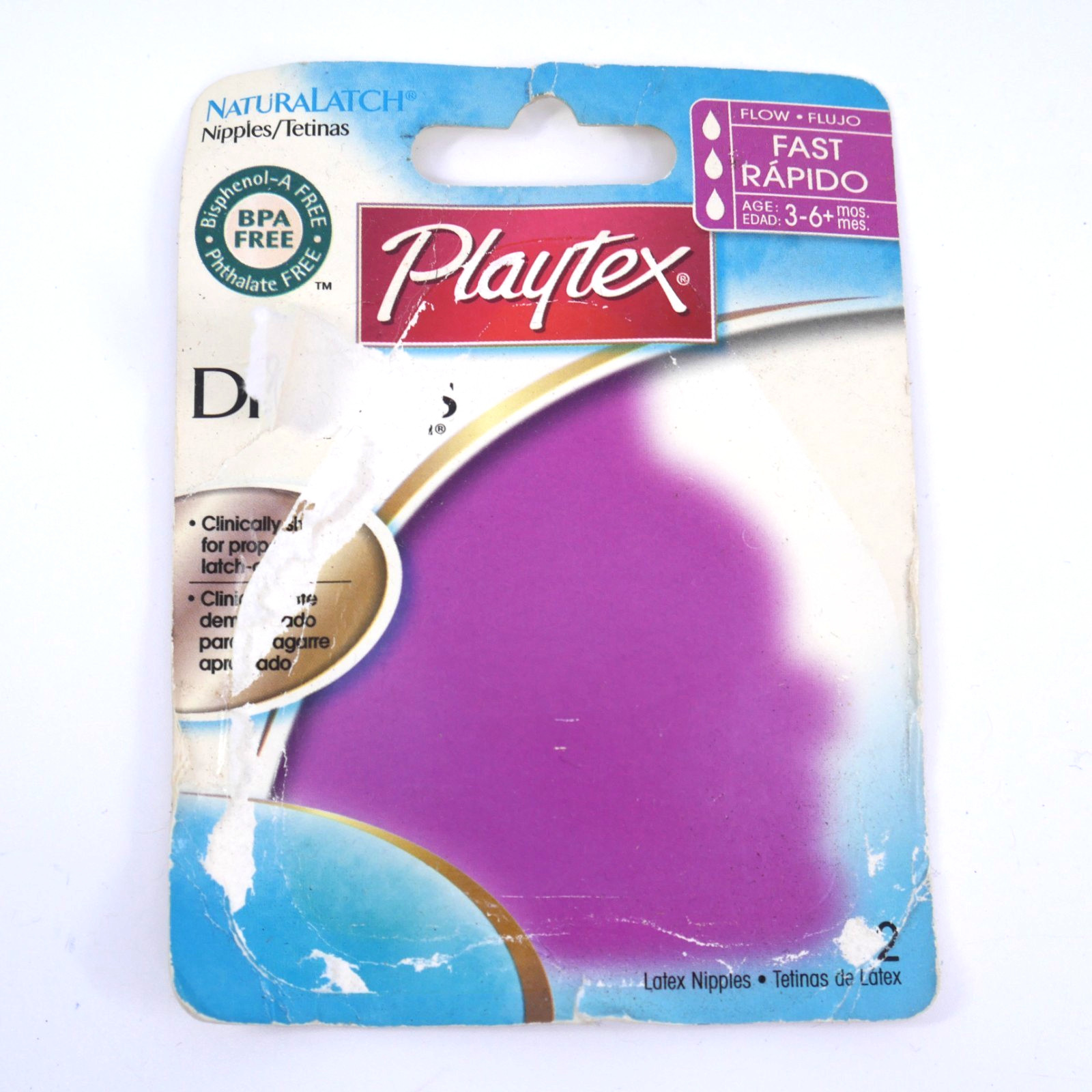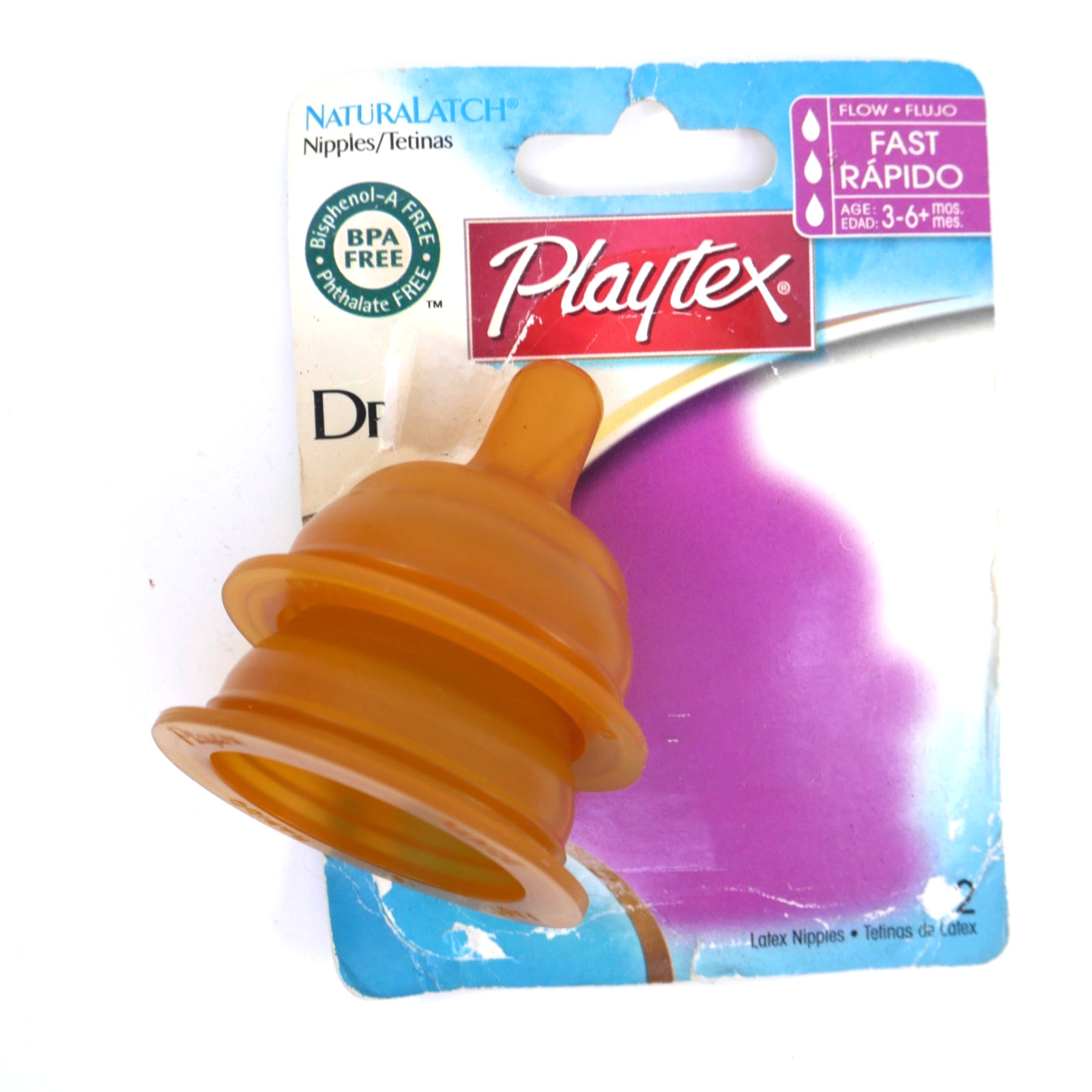 Playtex Nurser Naturalatch Fast Flow Two Latex Nipples Drop-Ins 3-6 Months -open
