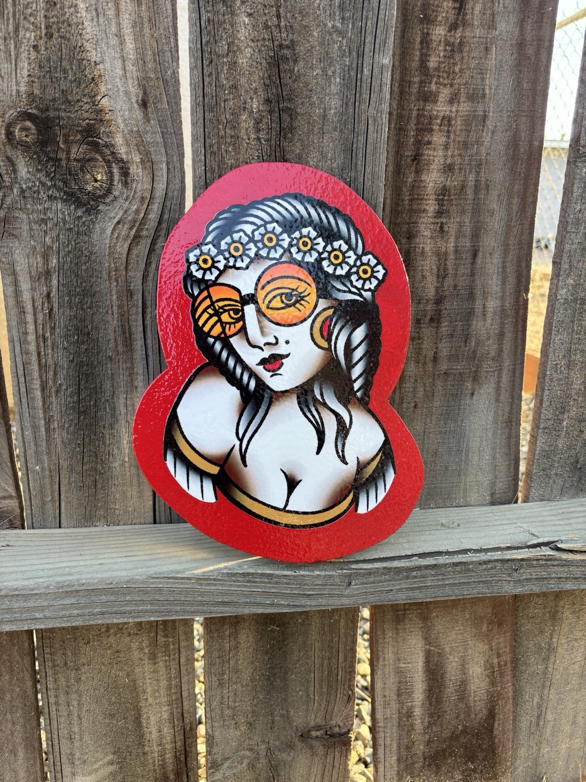 American Traditional Hippie Gypsy Lady Tattoo Flash Sign Art Tattoo Shop