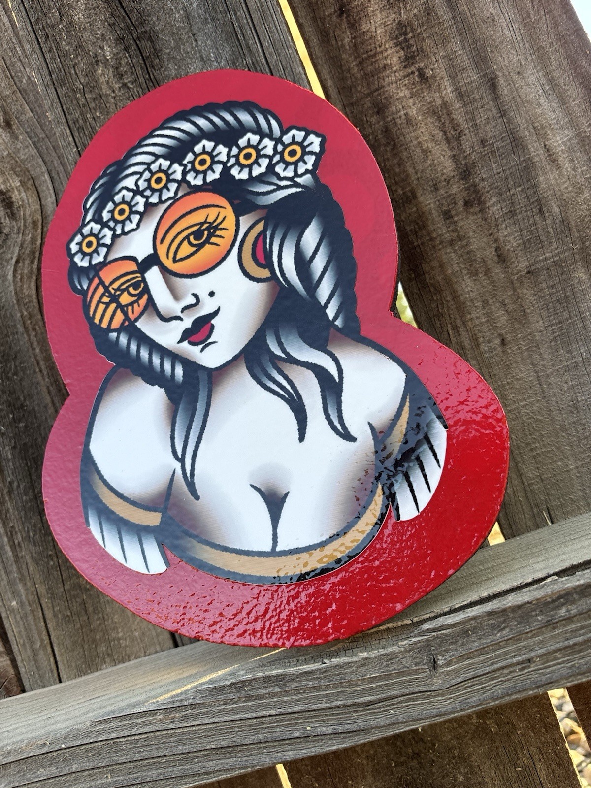 как выглядит American Traditional Hippie Gypsy Lady Tattoo Flash Sign Art Tattoo Shop фото