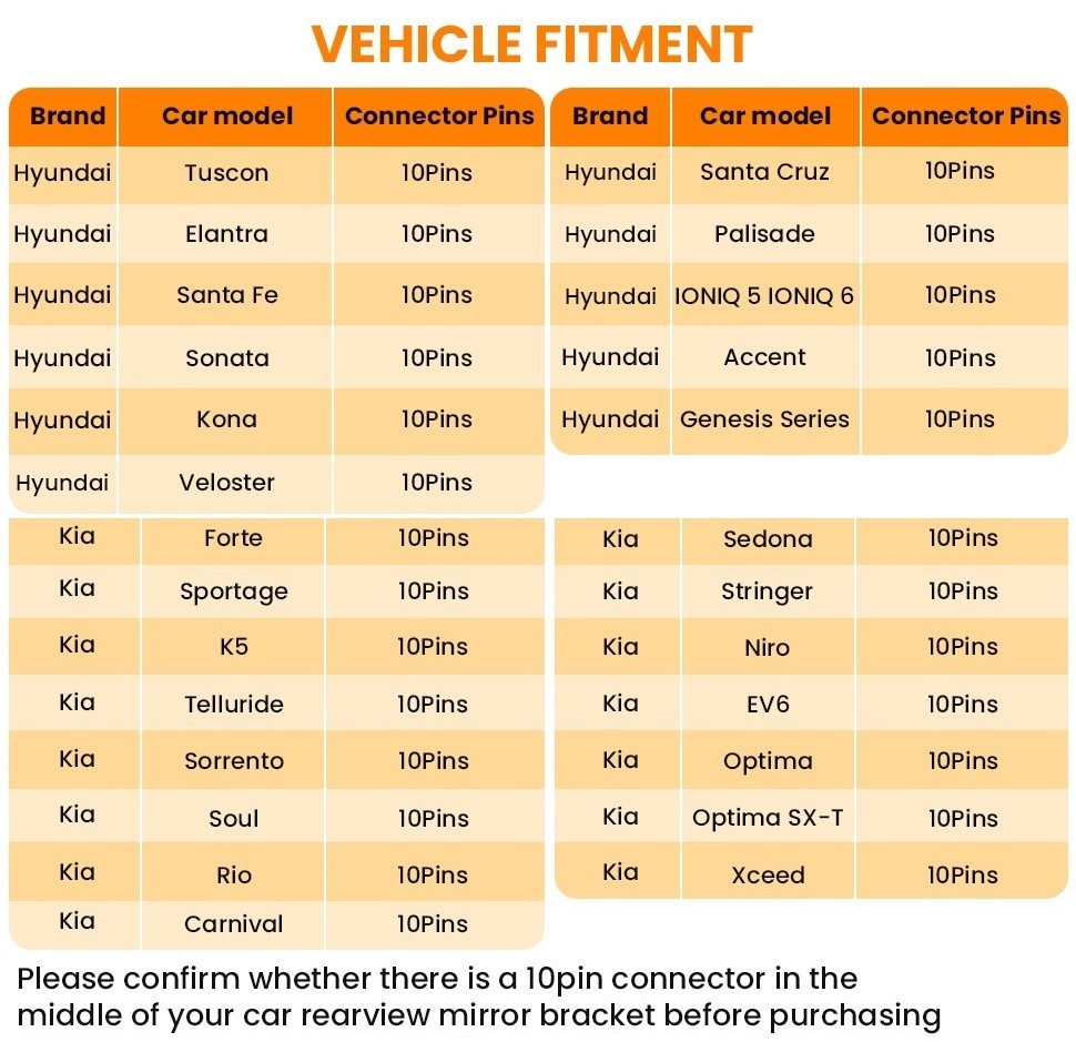 FitDVR Dash Cam Power Adapter 10-Pin for Hyundai, Kia, Genesis models use.