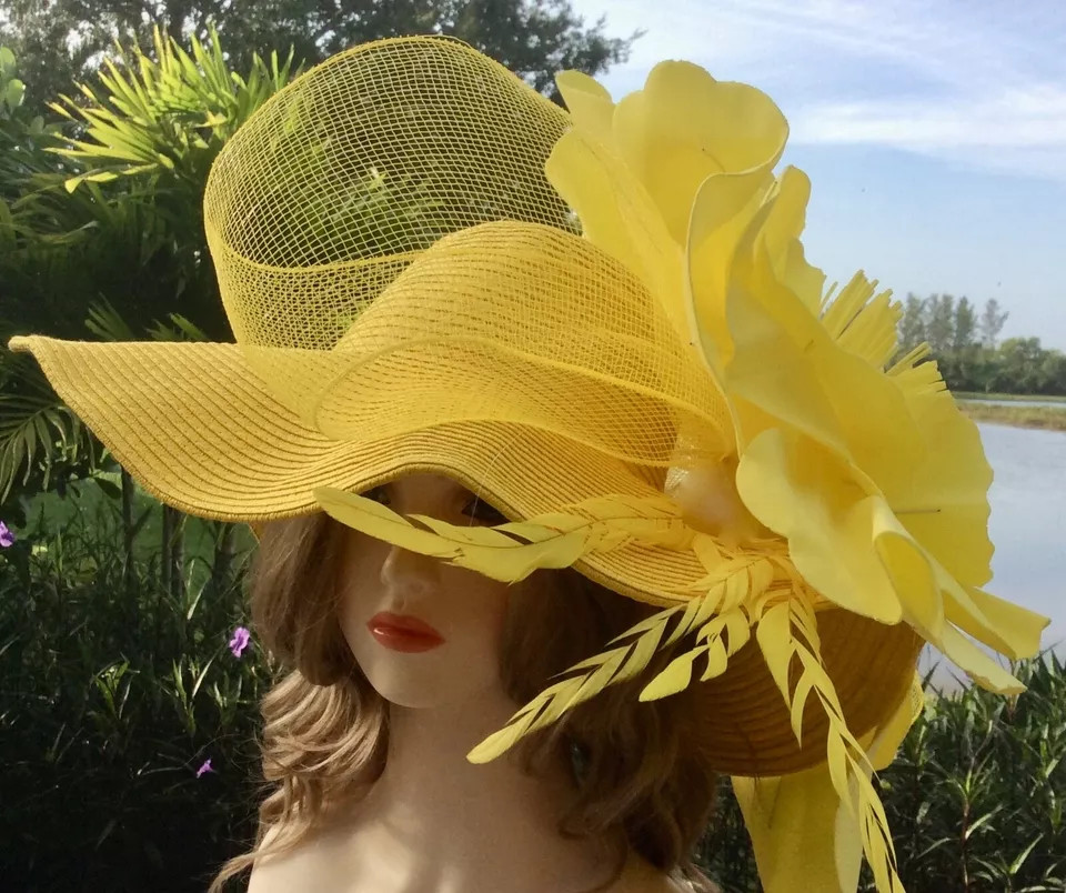 Ladies Wide Brim Kentucky Derby Tea Party Church Sun Straw Hat