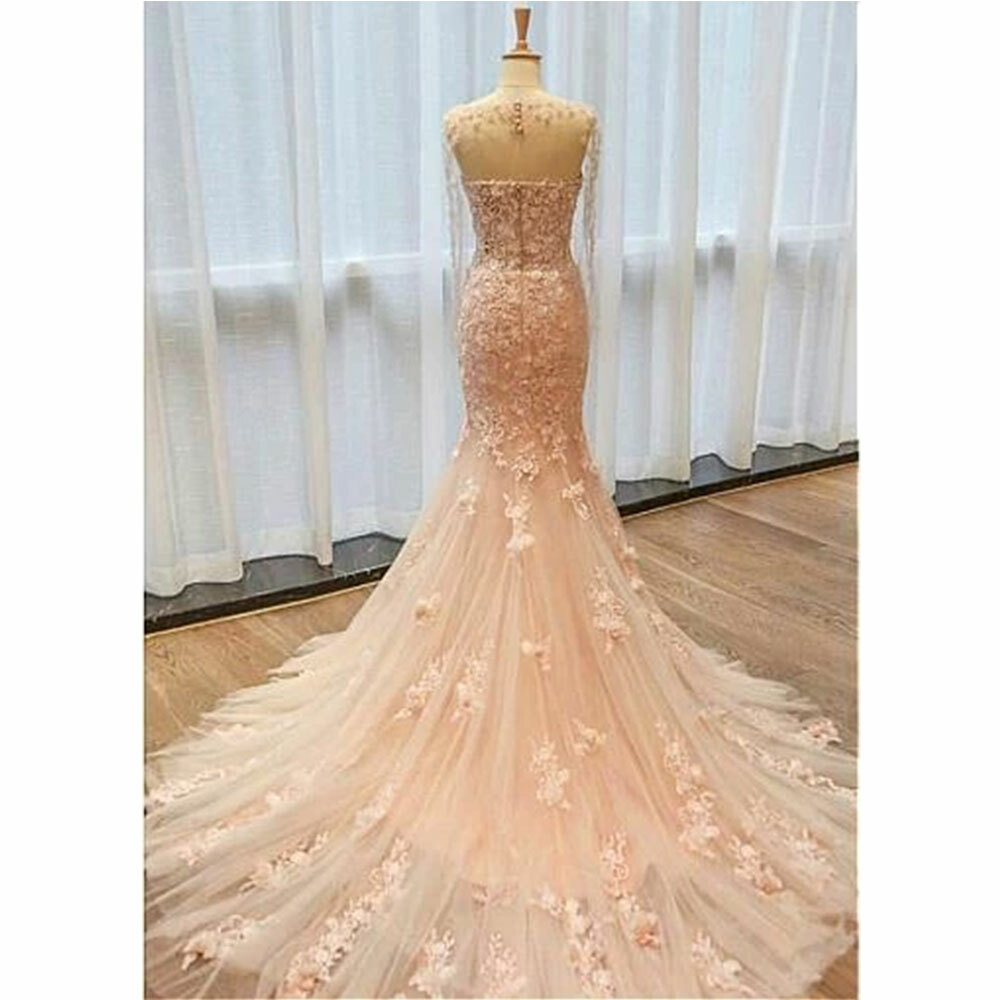 как выглядит Blush Pink Mermaid Wedding Dresses Long Sleeve Appliques Beach Wedding Gowns фото